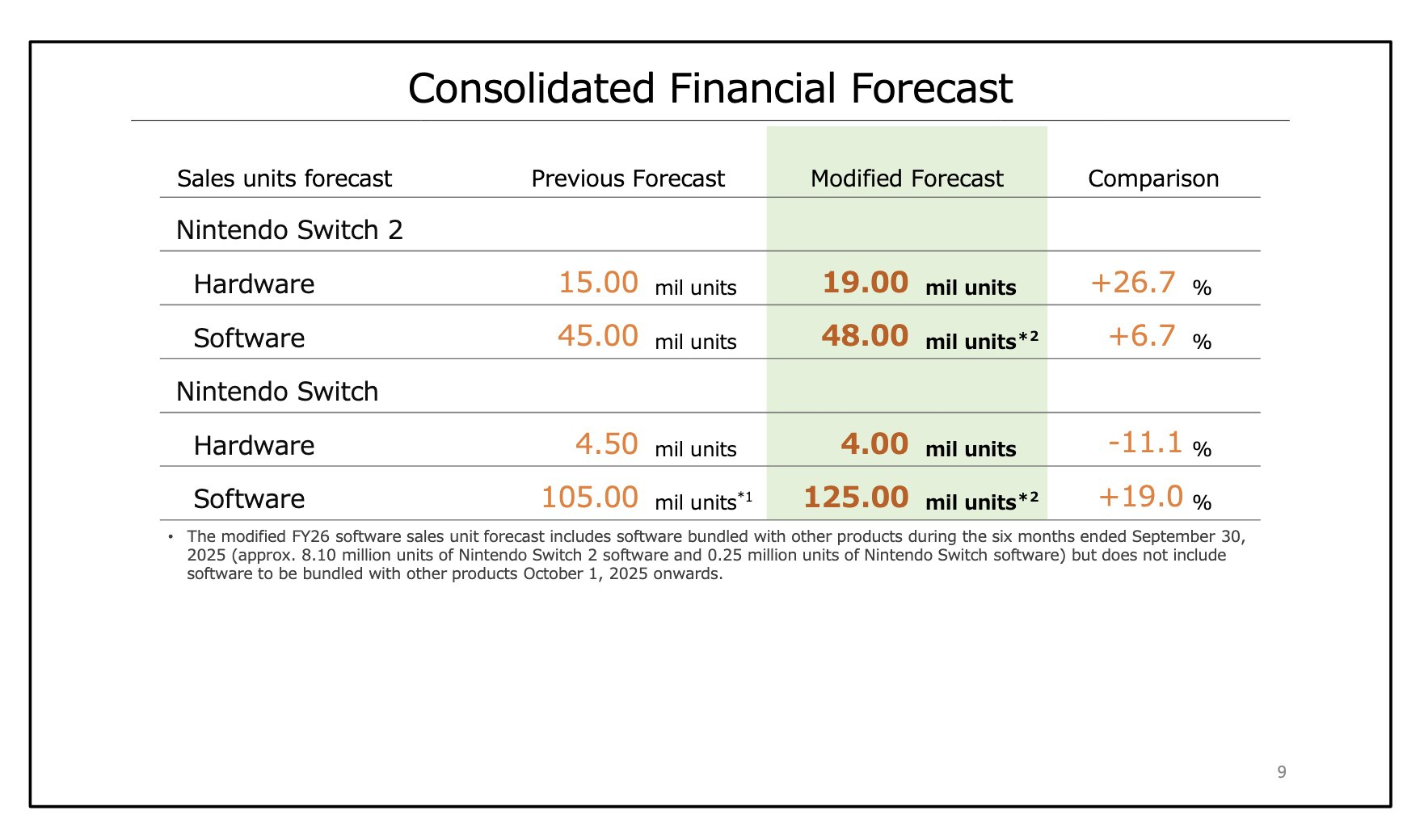 At this stage, Nintendo anticipates that the Switch 2 will be more popular than the Switch in its first year too, which reached 14.86 million units during that period. Unsurprisingly the latter's sales continue to drop, with Nintendo recording a 60% drop year-on-year to 1.89 million units. Consequently, Nintendo has trimmed its hardware forecast for the legacy model to 4 million units, although software projections have been revised upward from 105 million to 125 million, likely boosted by backwards compatibility with Switch 2 titles and that Mario Kart World has already shipped 9.57 million units.