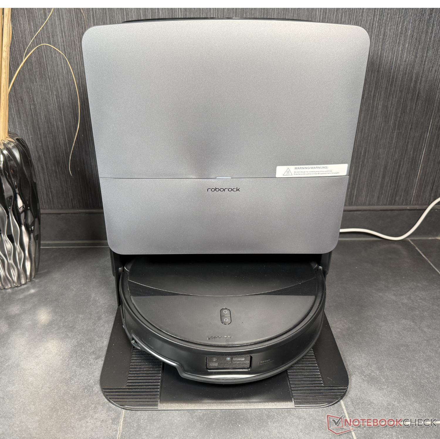 We tested the Saros 20 Set. As no cleaner is included, we did not take this into account in our cleaning tests (despite the option of automatic dosing in the station). Which brings us to the RockDock, the cleaning station of the Saros 20. It has a very similar design to the Saros 10R, but can now clean the mops and itself with 100°C hot water. This is followed by 55°C warm air drying. In addition to the usual self-emptying of the dust container into a dust bag (which is now dried with fresh air), there is also the aforementioned detergent dosage and charging in 2.5 hours.