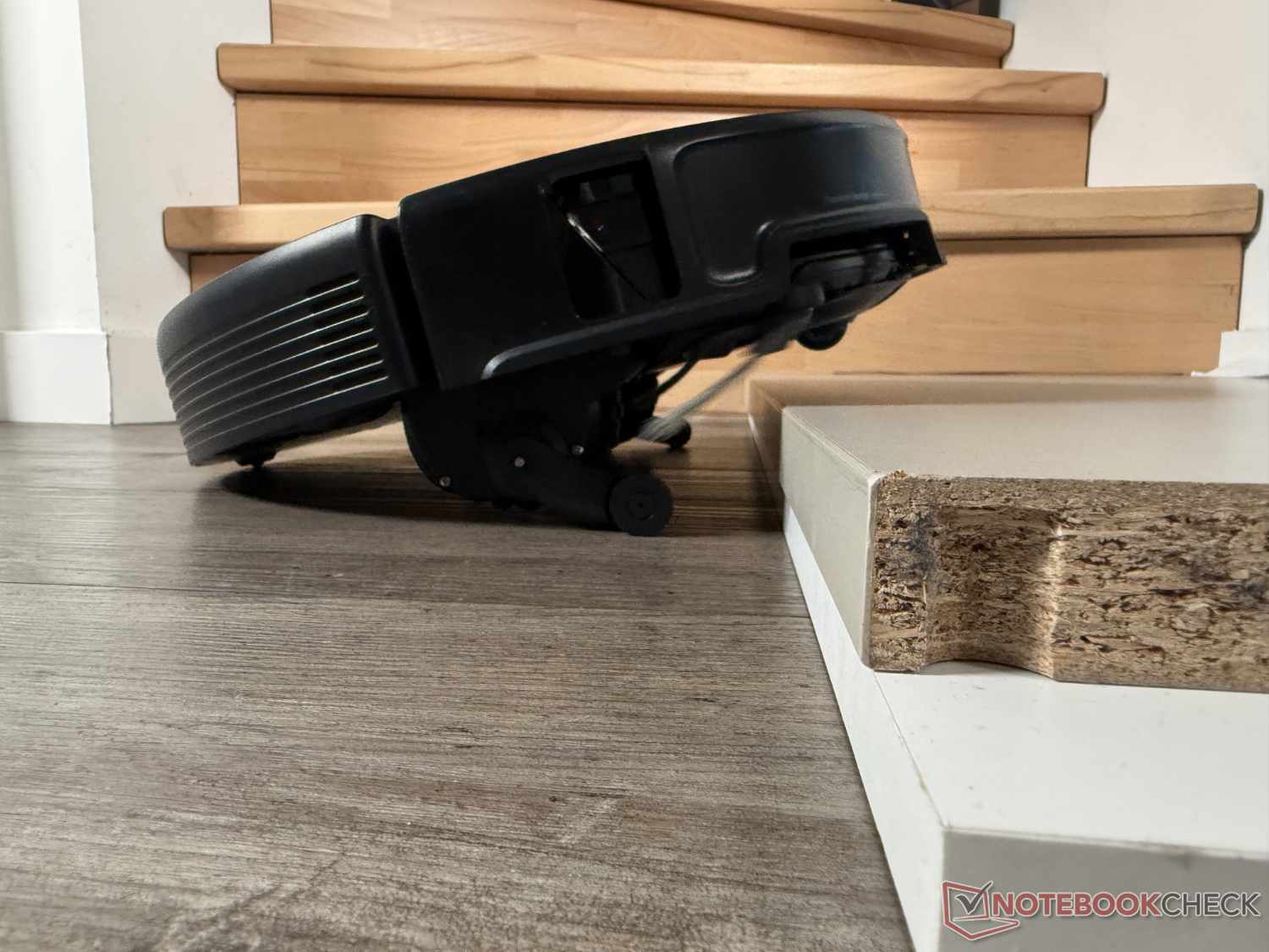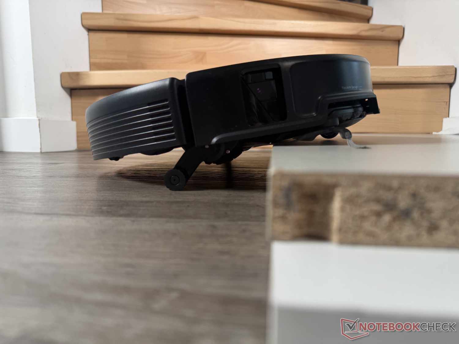 Thanks to its enormous climbing ability of up to 8.8 cm (in two steps), the Roborock Saros 20 can overcome almost any doorstep. In the practical test, it successfully climbed a 4.5 cm high 90-degree ledge, even if it looked a little laborious at times. To do this, it extends its two small auxiliary legs to first jack itself up at the front and then let the back follow.