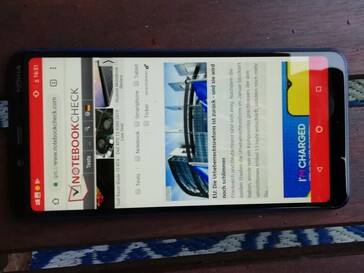 The 6-inch 18:9 IPS panel offers a native resolution of 1440x720 at an average maximum brightness of 510 nits, which was the second brightest display in our test group. Brightness distribution was determined to be a very good 94%. With sensor support the display can even reach up to 526 nits, and we were able to determine a maximum of 527 nits during the ALP50 test.