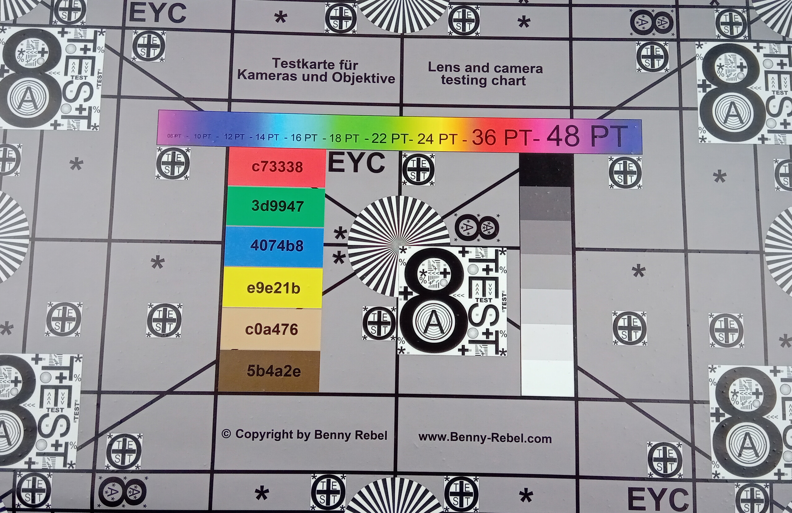 Our test chart photo yielded a similar result. Under normalized and controlled lighting conditions, the colors were too bright yet the photos were rich in details and fine structures. Colors faded noticeably on both sides in the middle.