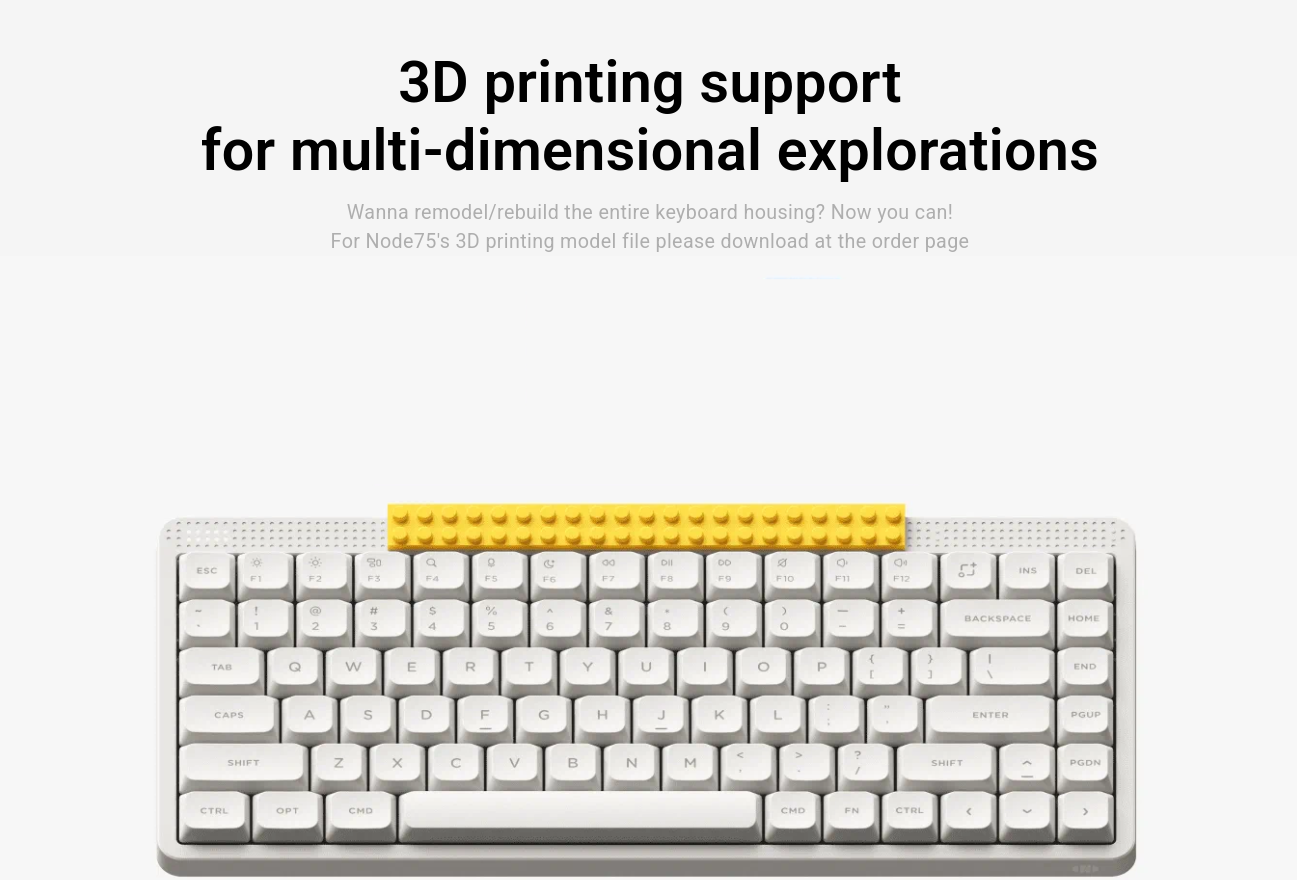 Just like with the NuPhy Kick75, which we enjoyed in our testing, NuPhy has published 3D models for the Node75 to allow deeper customisation and personalisation, which is always a nice touch. The 3D models in question are a pen dock, bar tray, phone stand, display dock, brick mount (as in Lego bricks), a cap mount, and a card rest. If you're skilled or ambitious enough, you should be able to use or modify these parts in order to create your own add-ons for the Node75.