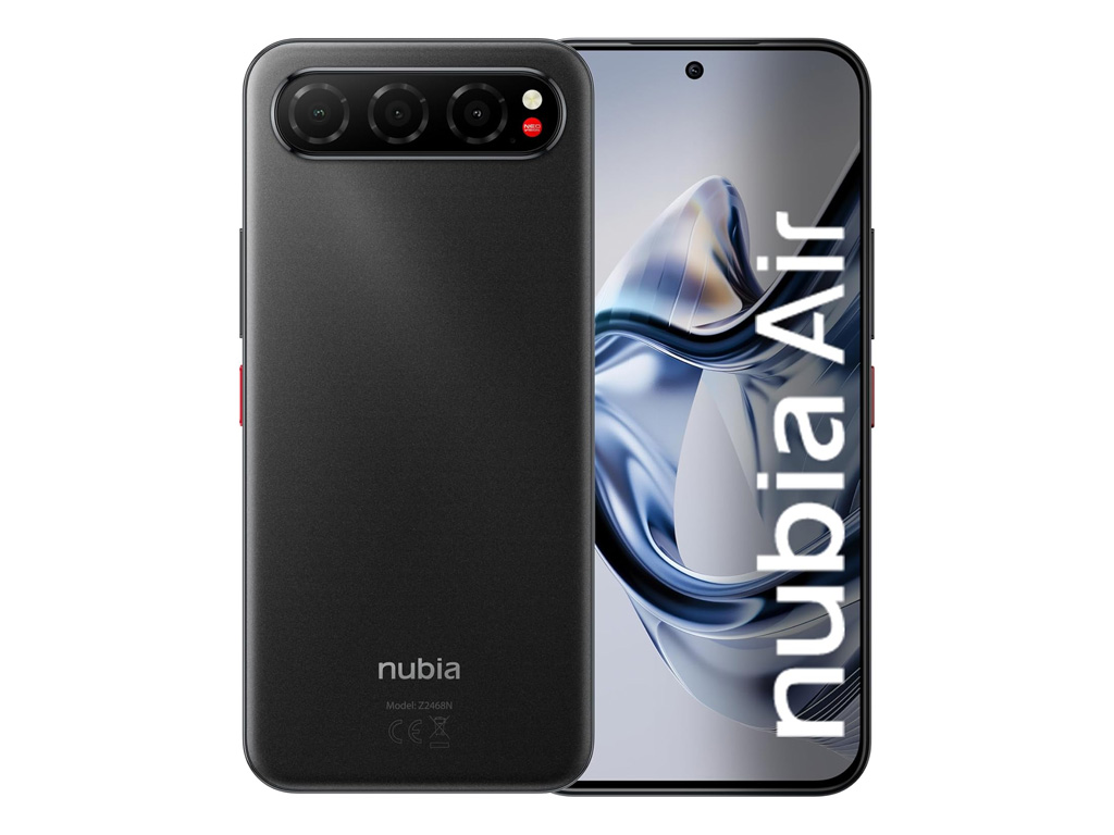 The Nubia Air is an ultra‑slim Android 15 smartphone that combines a 6.7 mm thin chassis and 172 g weight with IP68/IP69K dust and water resistance. It features a 6.78‑inch AMOLED display with 1224 × 2720 resolution, 120 Hz refresh rate and very high peak brightness, protected by Corning Gorilla Glass 7i and paired with an under‑display fingerprint sensor. Inside, a 6 nm Unisoc T8300 SoC with Mali‑G57 MP2 GPU delivers solid everyday performance but only modest 3D gaming capability. A 50 MP main camera and 20 MP secondary camera aim at mainstream photography needs, while a 5000 mAh battery helps balance the thin design with good endurance. Connectivity includes Wi‑Fi 5, Bluetooth 5.4, 5G, dual SIM, GPS and USB‑C with Power Delivery. Across numerous international reviews, the Nubia Air earns an aggregate rating of about 75%, with praise for its design and value and criticism focused on its midrange performance ceiling and limitations for demanding users.