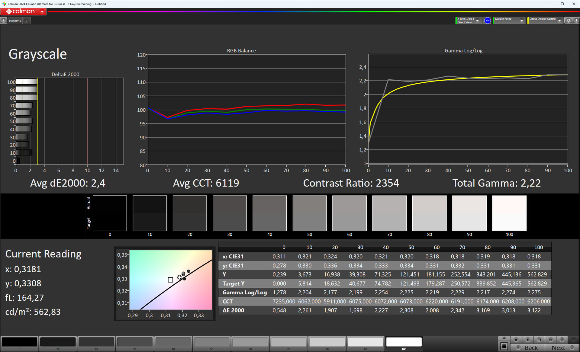 ΔE Greyscale Calman: 2.4 | ∀{0.09-98 Ø5}