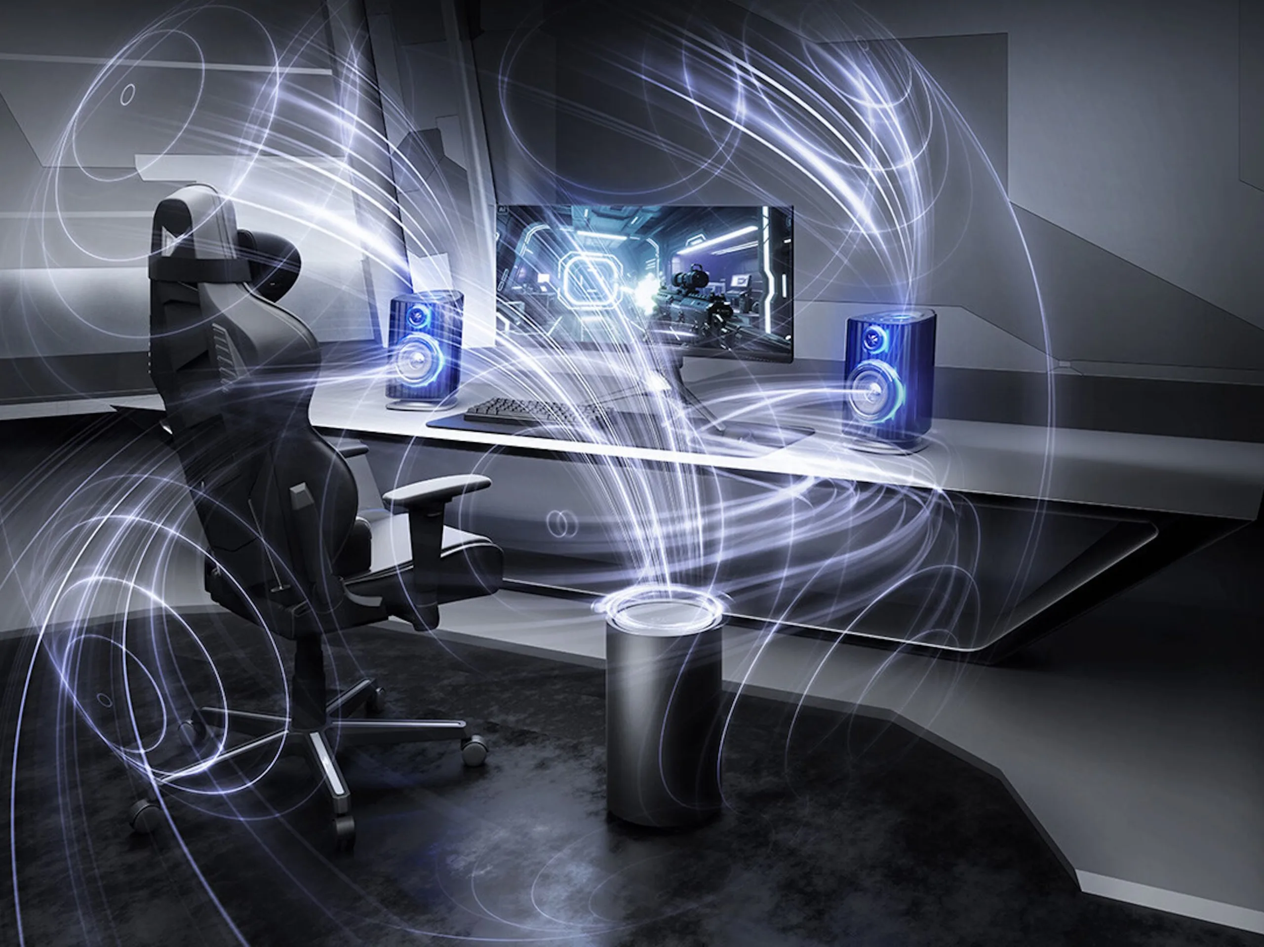 The new OXS speaker systems are intended to be placed on a desktop, so they should be usable with a gaming PC or consoles like the PlayStation 5 and Xbox Series X/S. The Thunder Duo Max are the top version and come with a wireless subwoofer, which should offer a more powerful bass. On the other hand, the Thunder Duo X are a 5.1.2-channel system with neck speakers as satellites, so the satellites move along with the gaming chair.