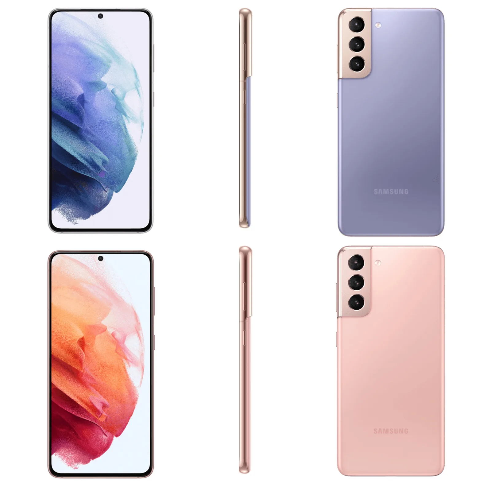 Undoubtedly, the redesigned rear-facing camera housing is one of the more striking elements of the Galaxy S21 series. The new renders show that the frame of both devices wraps up to the edge of the camera house, unlike many other smartphones. The effect is less noticeable on the white and silver version, but it looks particularly striking with the gold and purple one.