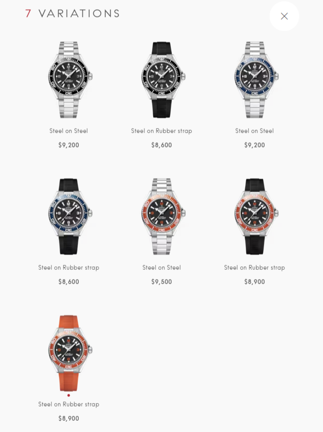 You can now buy the Omega Seamaster Planet Ocean 600M fourth generation watches in Europe. There are seven variations, with steel on rubber strap watches starting from £7,200/€8,400, and steel on steel watches starting from £7,700/€9,000. Launching shortly in the US, these products will be priced from $8,600 in this market.