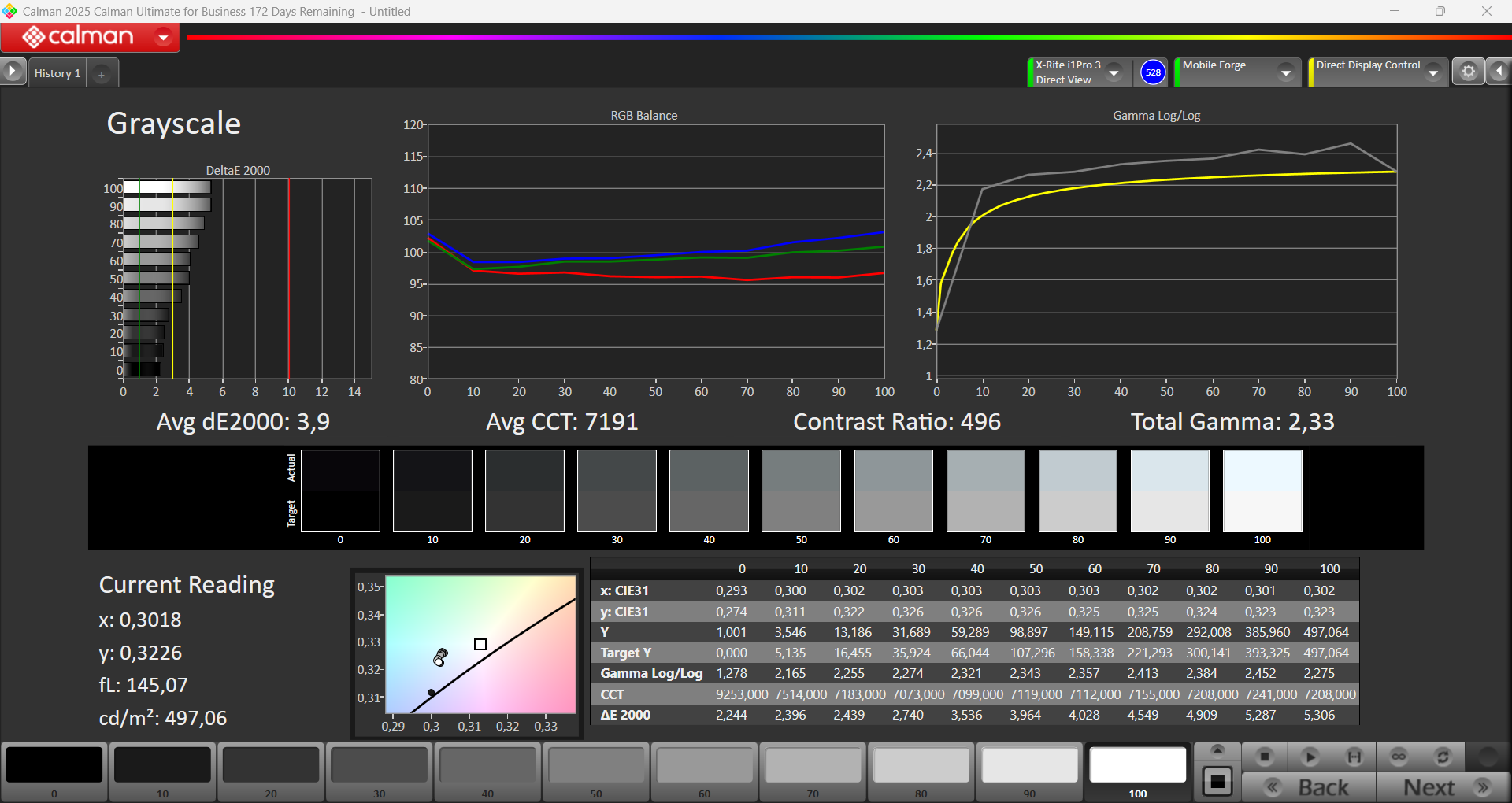 ΔE Greyscale Calman: 3.9 | ∀{0.09-98 Ø5}