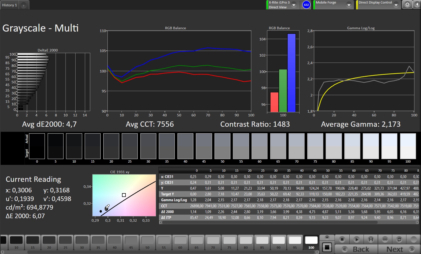 ΔE Greyscale Calman: 4.7 | ∀{0.09-98 Ø5}