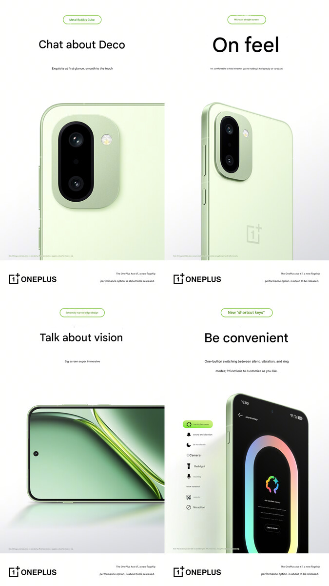 In addition, the photos have confirmed that the OnePlus Ace 6T will come with a dual camera setup on the rear, with a similar-looking camera island as the OnePlus 15. While the brand didn't confirm it yet, these two are expected to be 50 MP sensors. The company has, however, confirmed that the phone will sport a straight display and a lightweight build.