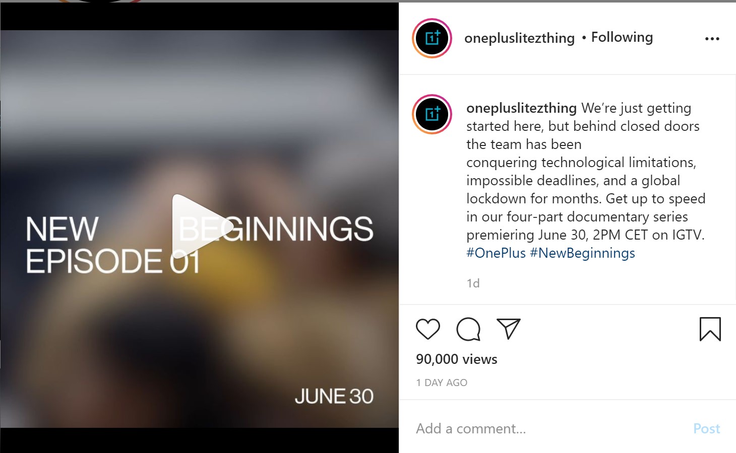 Previously, it had been suggested that OnePlus would announce its next device on July 10. Instead, the company has announced that it will host a launch event on June 30 at 14:00 CET (UTC+02:00). The event will be available on IGTV. OnePlus will then follow the announcement two days later with the unveiling of three new Smart TVs, as we reported yesterday.