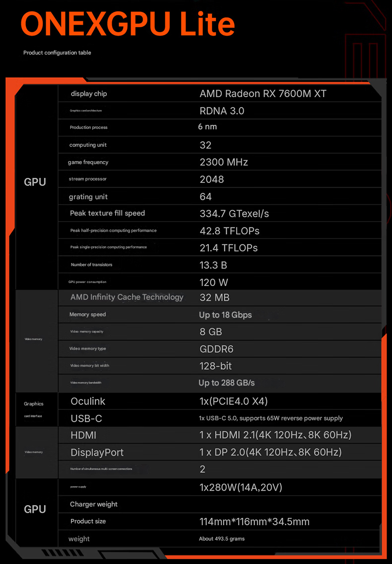 The OneXGPU Lite was recently teased as a compact eGPU with the AMD Radeon 7600M XT. OneXPlayer has now launched it in China, and one of the notable aspects is the 80 Gbps USB-C port. The company calls it USB 5.0, but it's essentially a USB4 v2.0 port.