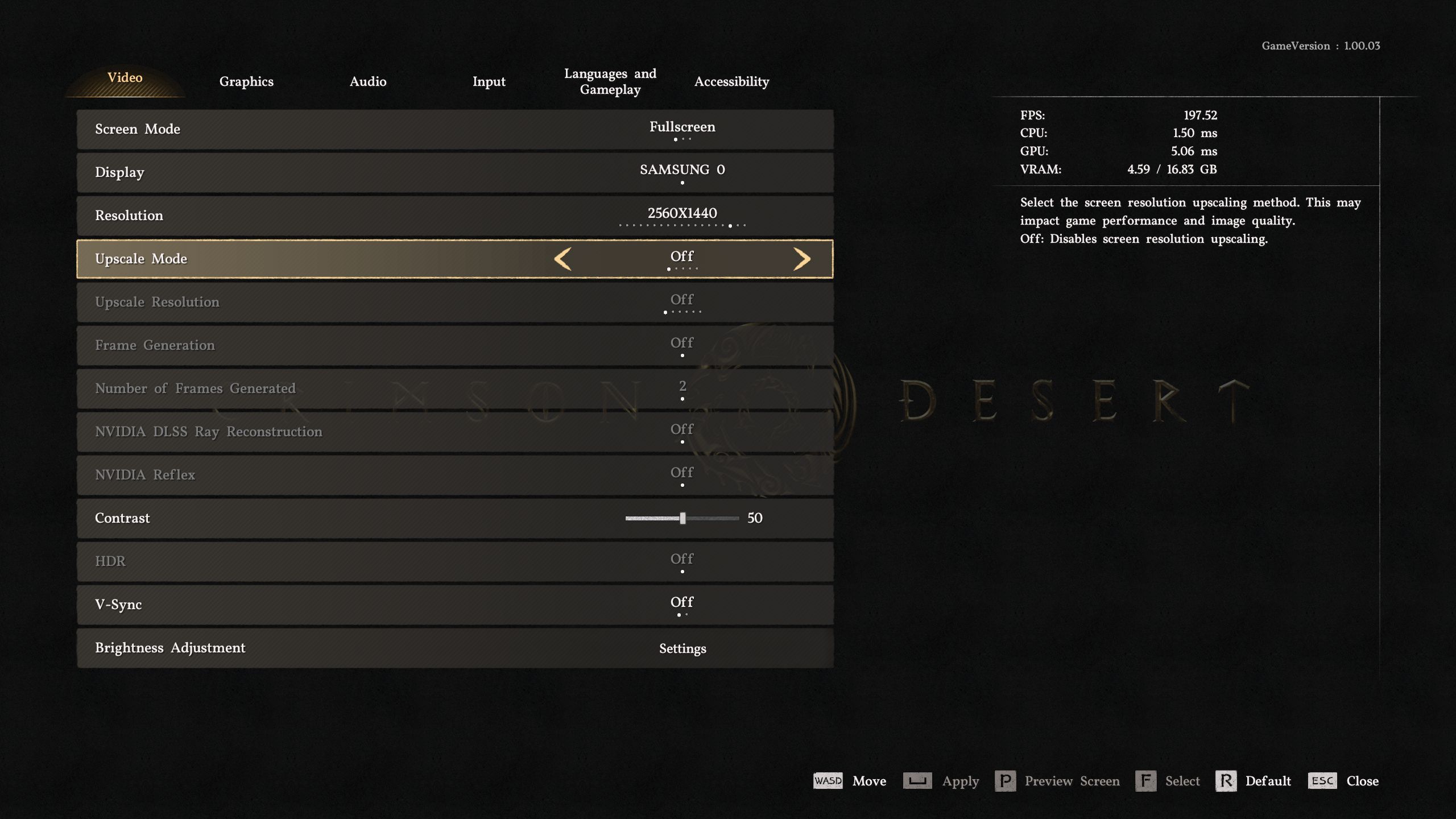 The game also deserves credit for its extensive graphics menu, which is split across two tabs. The Video options allow you to change not only the resolution, but also upscaling, among other settings. While Crimson Desert does not support XeSS, it does include FSR 3.1 as well as DLSS 4.0 and DLSS 4.5. As expected from a current game, the title also supports Frame Generation. Ray Reconstruction can also be enabled if desired, resulting in even more attractive and believable lighting (see the screenshots below).