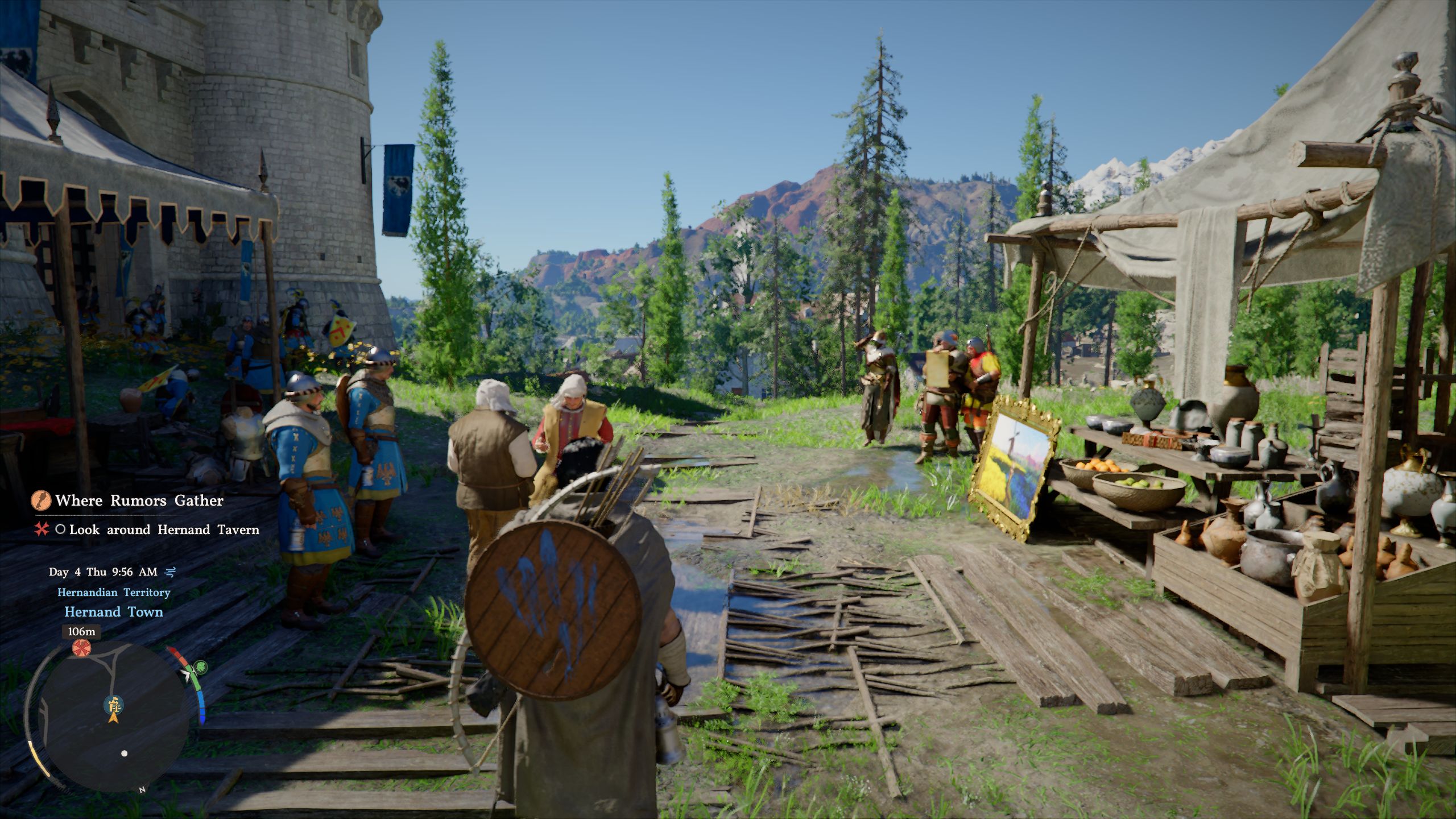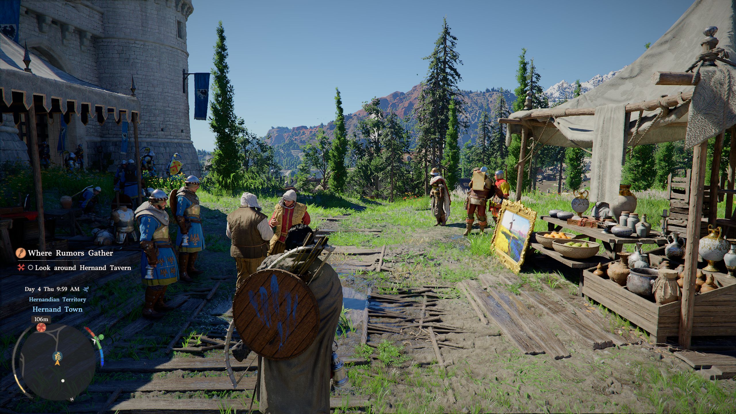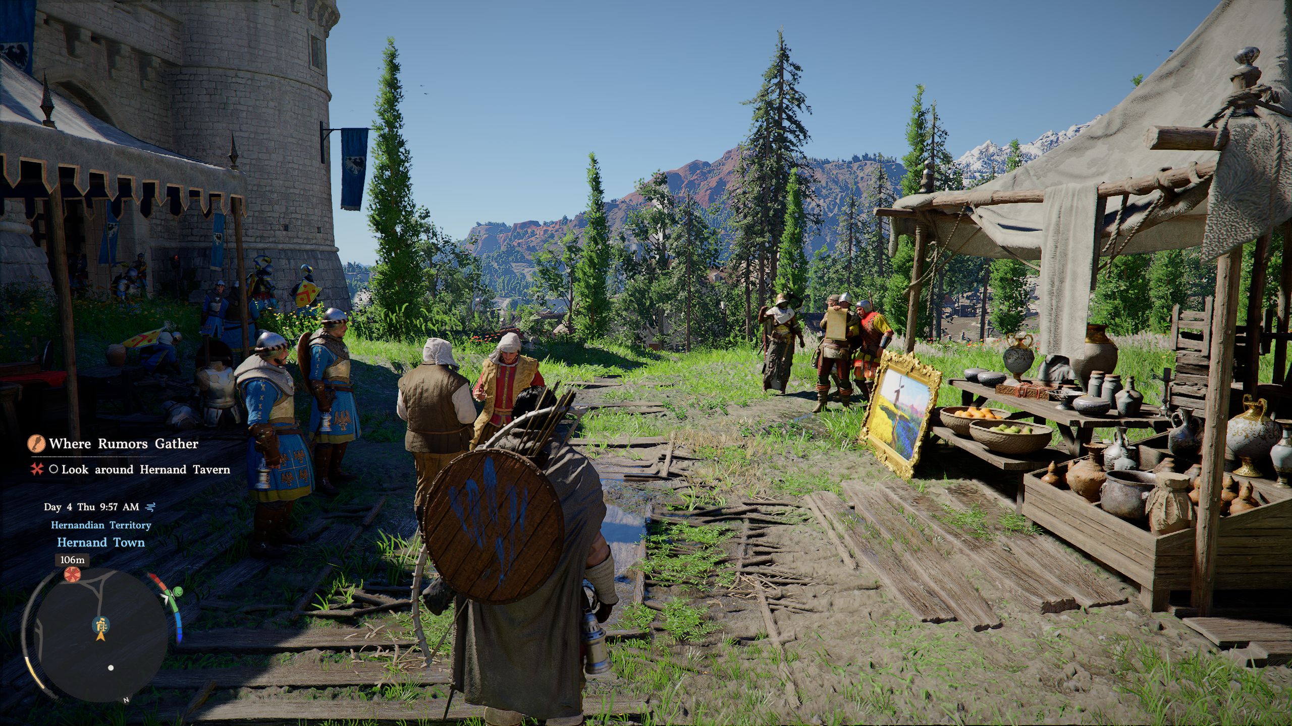 Technically, the game makes a fairly good impression so soon after release, provided you can overlook minor issues such as somewhat long load times and pop-in affecting objects and characters. At medium settings or higher, the engine renders very attractive landscapes as well as settlements and towns. Thanks in no small part to the dense vegetation—which at times moves a bit too quickly—and the many effects, the game world comes across as extremely detailed and lively. Overall, the title reminded us of a mix of Kingdom Come Deliverance and Dragon's Dogma, with various other influences and borrowed elements mixed in as well, although the end result still feels very distinct.