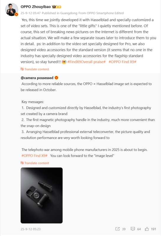 Although the Oppo manager did not officially provide any details about the camera kit and stressed that the final product would not correspond to the design shown in the concept photo above, he did confirm that a camera solution for the Oppo Find X9 Pro is in development. Video accessories are also planned for the Oppo Find X9 base model, but it remains unclear whether these will include external lenses. It is also unclear whether these Hasselblad accessories will be offered globally for the Oppo Find X9 launch, which is set to take place very soon.