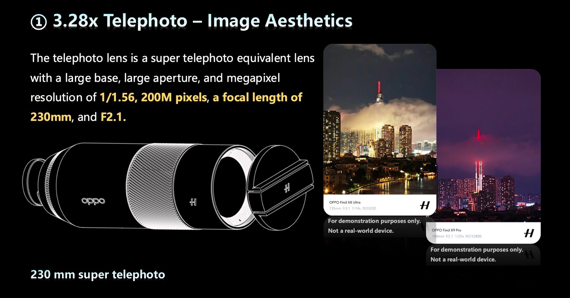 This telephoto camera features a 35mm equivalent focal length of 70mm and an aperture of f/2.1. For those who want even more reach, Oppo offers an optional telephoto converter that effectively increases the focal length of the periscope telephoto camera to 230mm (35mm equivalent), giving the smartphone 10x optical zoom.