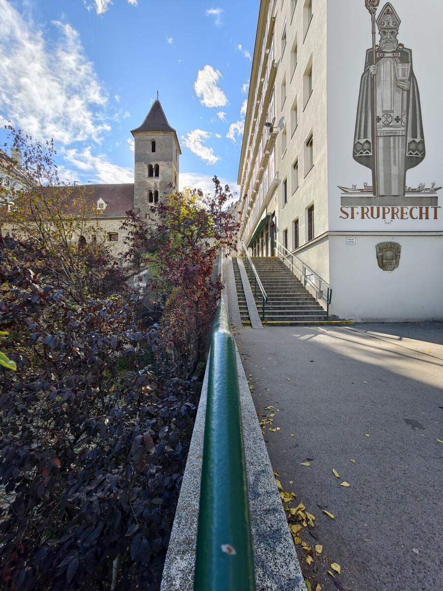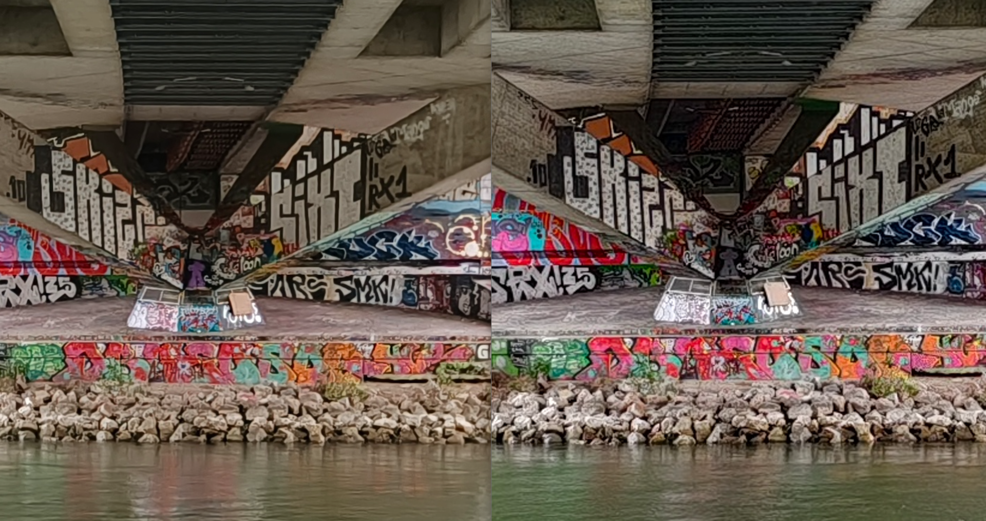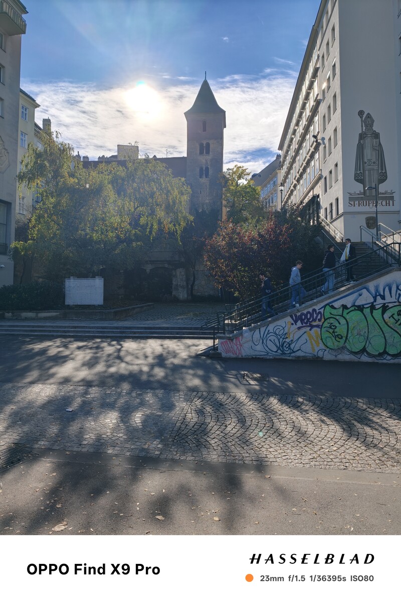 I created another crop comparison with the two pictures below. In the image of Vienna’s oldest church, the ultra-wide lens of the Oppo Find X9 Pro holds up very well against the Vivo in 50MP quality. The Zeiss camera flagship still appears slightly sharper, but in daylight, the smaller sensor of the Find X9 Pro performs impressively. The scene under the bridge shows a similar pattern. The Vivo photo looks a bit sharper, maybe even slightly over-sharpened, despite the Oppo image being 25MP. In the staircase shot, Oppo delivers a slightly warmer image, while the Vivo X200 Ultra shows a bit more noise in the zoomed-in view, which is surprising given its larger sensor.