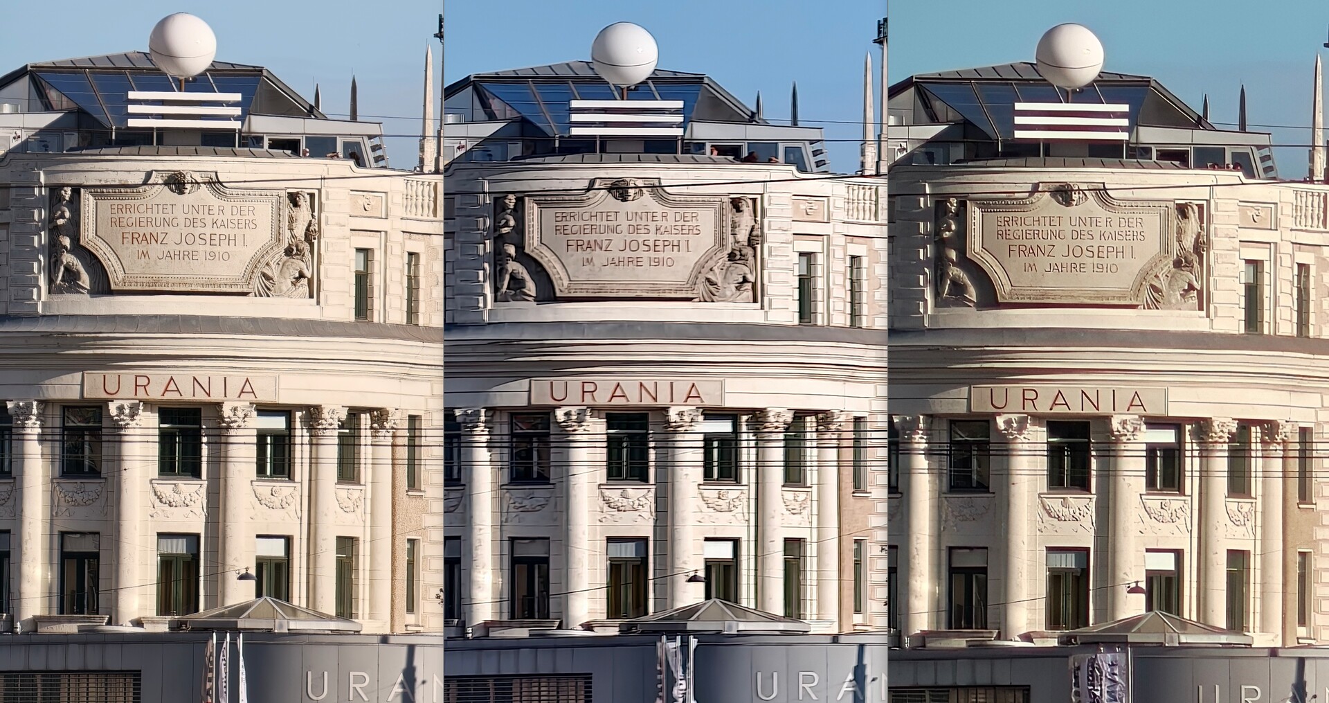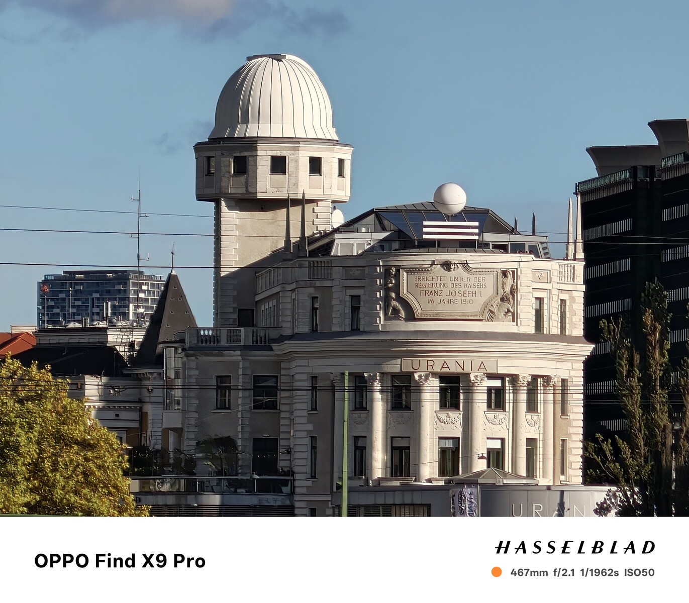 In our crop comparison using the Vienna Urania as an example, the differences become even clearer. Nothing can replace true optical zoom. However, the larger telephoto sensor of the Vivo X200 Ultra and maybe its slightly better zoom algorithms can compensate the lack of optical zoom better than the Oppo Find X9 Pro.
