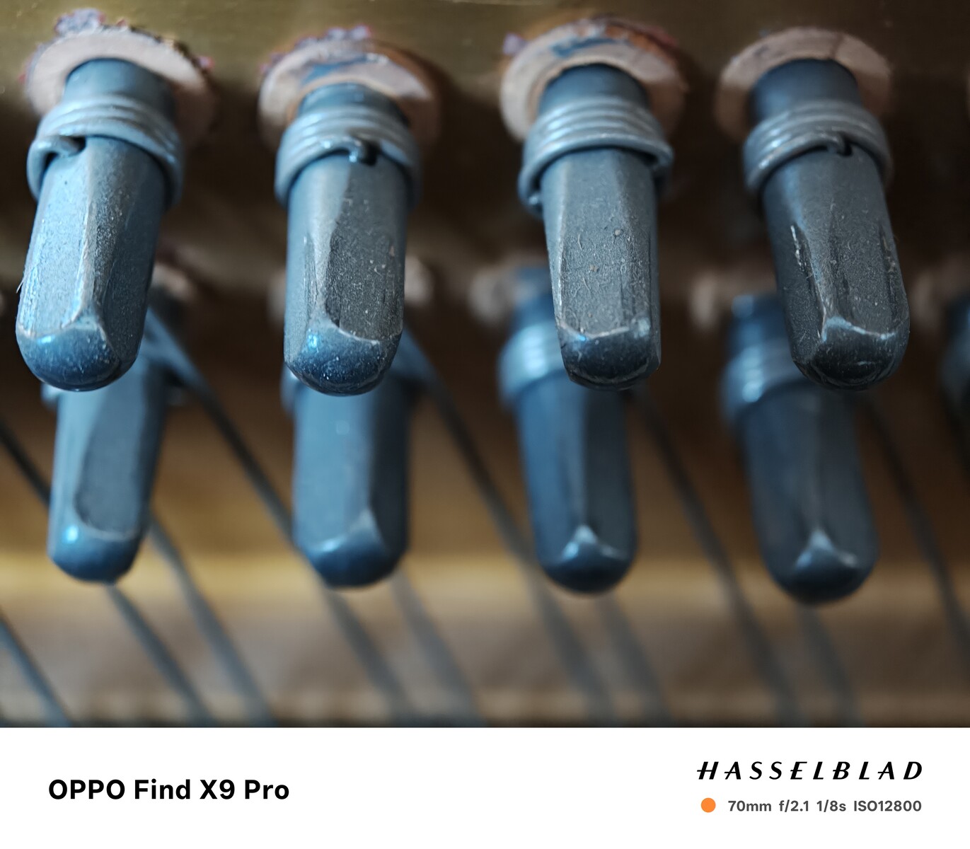 Last but not least, I took two macro shots with the telephoto lens. As for the indoor shot of a piano, the distance to the subject was about the same in both cases. But with the lamp, the Zeiss camera could only focus on the light from a much greater distance, which is why the (dusty) glass sphere is still visible here.