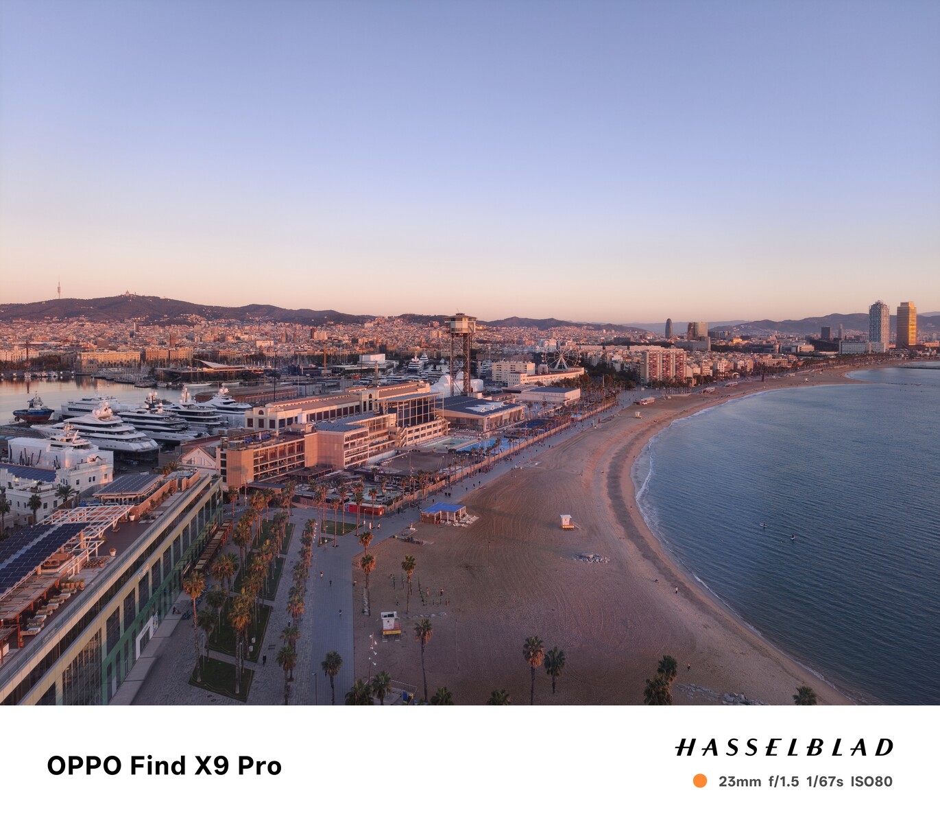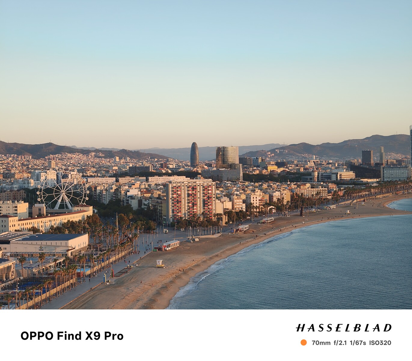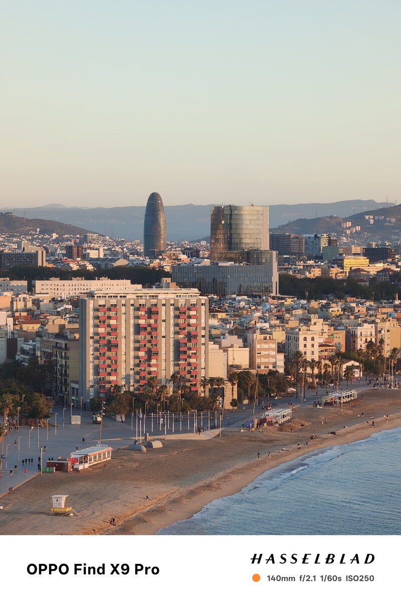 At times, the Oppo Find X9 Pro has white balance issues even without the lens mount attached. The problematic photo below was taken from the 16th floor of the W Hotel by the beach in Barcelona at sunrise, without the lens mount. The magenta tint disappeared after a slight pan. We can’t say why this issue sometimes appears even when the multispectral sensor isn’t covered. Reflections from the window might have caused problems in this case. Oppo definitely needs to make improvements here.