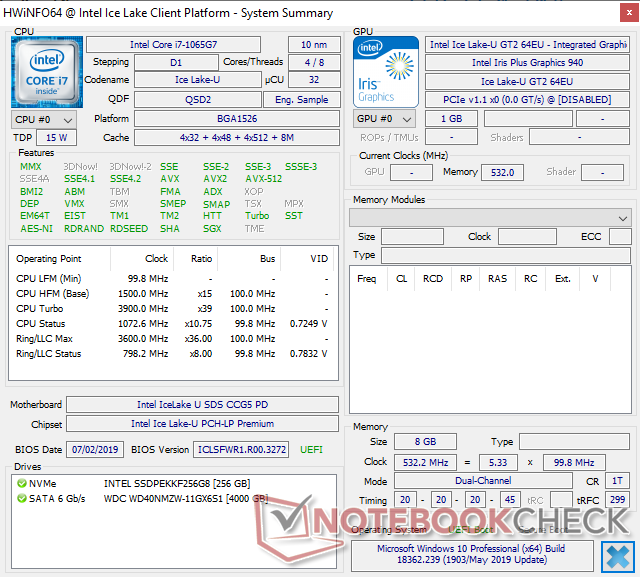 | Intel SDS Core i7-1065G7 Preliminary Sample 15 W | |
