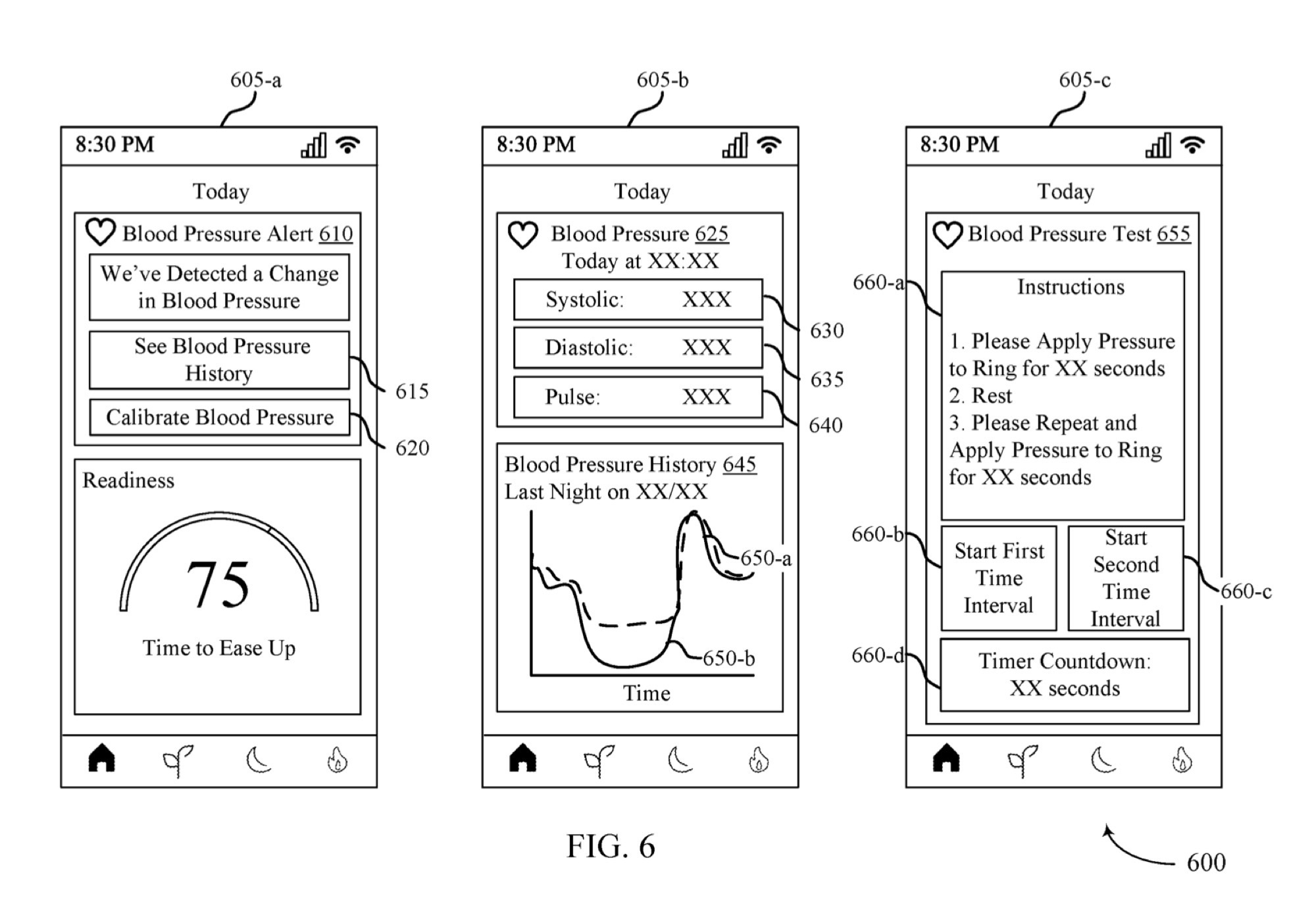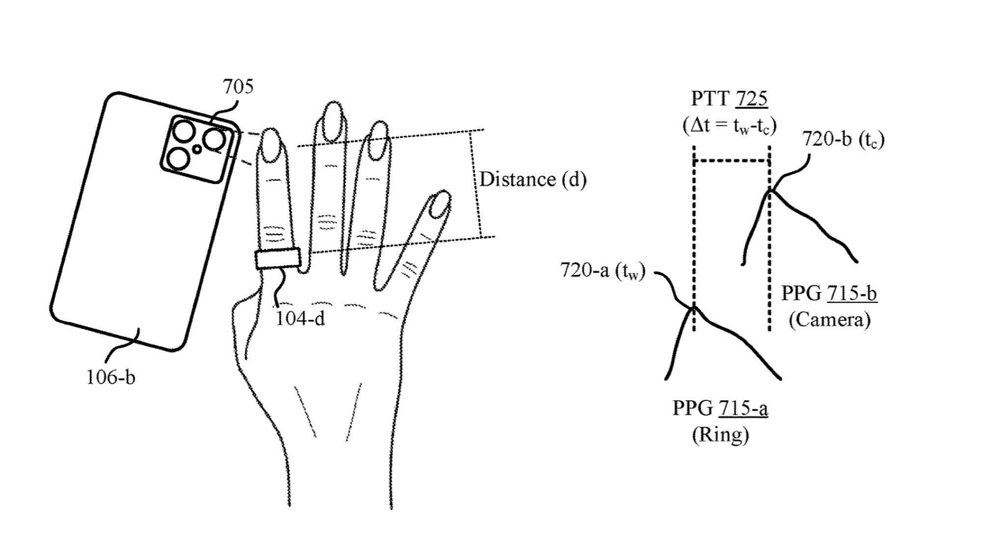 In essence, the patent describes a method for measuring the duration of pulse waves between two points on the body. This is essential because blood pressure is determined based on the time it takes for a pulse wave to travel from one point on the body to another. The pulse time interval determined in this way allows Oura to calculate blood pressure. As the patent drawings show, specific values for systolic and diastolic blood pressure are displayed, rather than just a rough trend line, as is the case on some competing products.