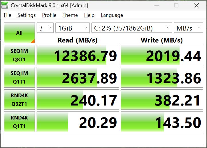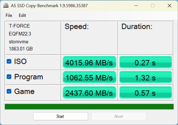 The TeamGroup T-Force Z540 doesn't quite reach the blazing speed of the Kingston Fury Renegade G5. Even so, its results are excellent, and the SSD is impressively fast.