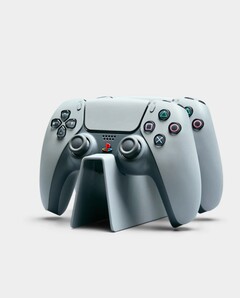 The stand comes with a holder for two Sony DualSense controllers with a matching gray finish. Although this holder does not have any electronics, it does offer a cable guide so that the gamepads can be charged with the supplied cable. The stand is supplied disassembled and must therefore be assembled by the buyer before use.