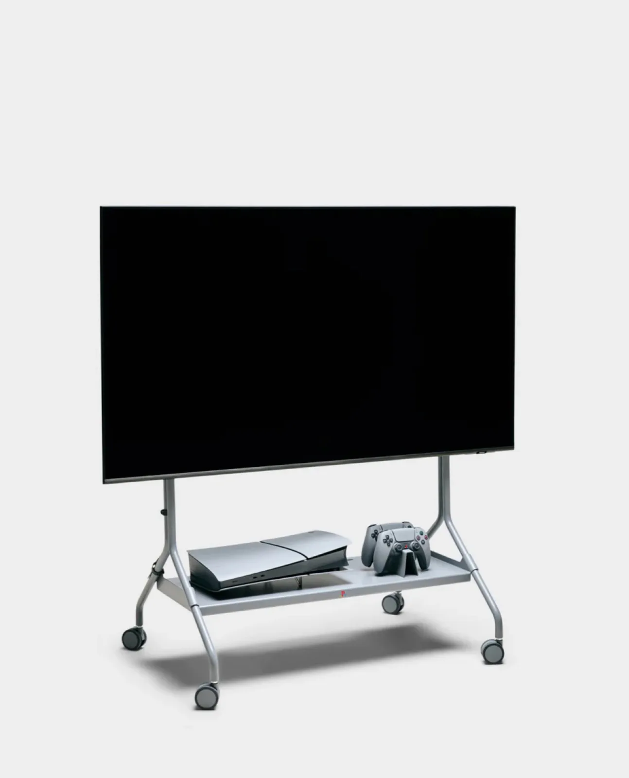 Pedestal is made of powder-coated stainless steel, making it particularly robust and durable. Weighing around 15 kilograms, the stand is suitable for televisions with a screen diagonal of 40 to 70 inches. Four wheels make Pedestal easy to move - perfect if the entire gaming setup needs to be stowed away in a storage room or moved to another room. A shelf under the TV offers space for a PlayStation 5 and other accessories.