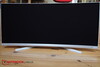 However, the ultrawide screen is not quite perfect. Those who are sensitive to noise and work in quiet environments might be bothered by the active fan, which sometimes blows with a strange background noise. The fact that the off button regularly offered a Pixel Refresh instead of its function was also annoying. The cheap-looking plastic bar at the lower edge shows processing flaws or gaps.