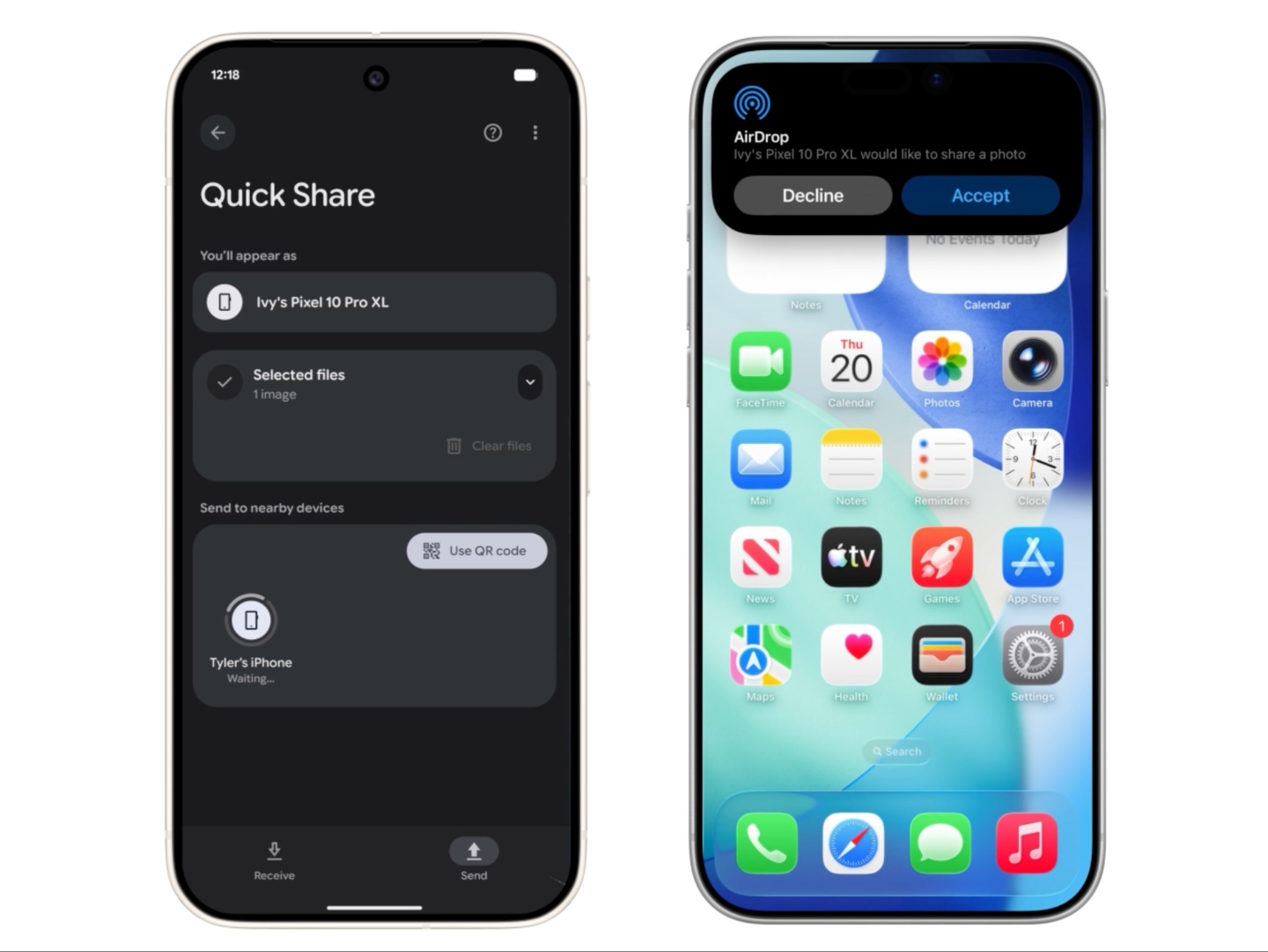 As shown in the animation, the Quick Share menu will be able to find iPhones that have AirDrop turned on when nearby with visibility set to 'Everyone for 10 minutes', and then easily send files across. Similarly, iPhone owners, or any Apple device with AirDrop, can use the AirDrop menu to share files with Pixel 10 devices nearby. Google says the feature is starting to roll out for Pixel 10 series today (November 20) and the company is working to expand to other Android devices.