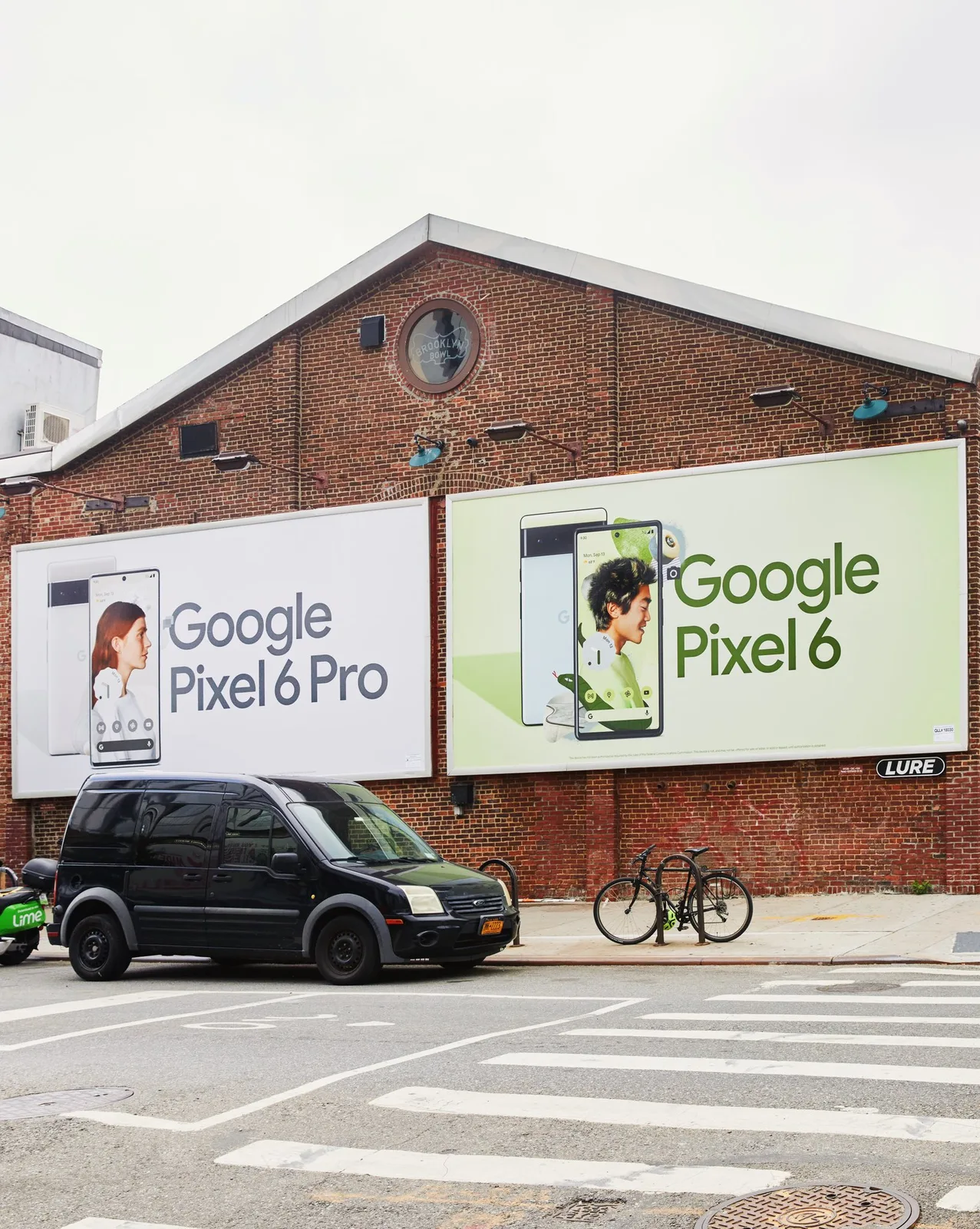 Google has not showcased the billboards online, but the photographer (David Urbanke) who photographed the Pixel 6 and Pixel 6 Pro has. As far as we can tell, Google has moved away from the uniform bezels that it included in the Pixel 5. Instead, the Pixel 6 series returns to thicker bottom bezels, the Pixel 6 more than the Pixel 6 Pro. Generally, the Pixel 6 has thicker display bezels than the Pixel 6 Pro, although they may be less noticeable in person than in these billboards.