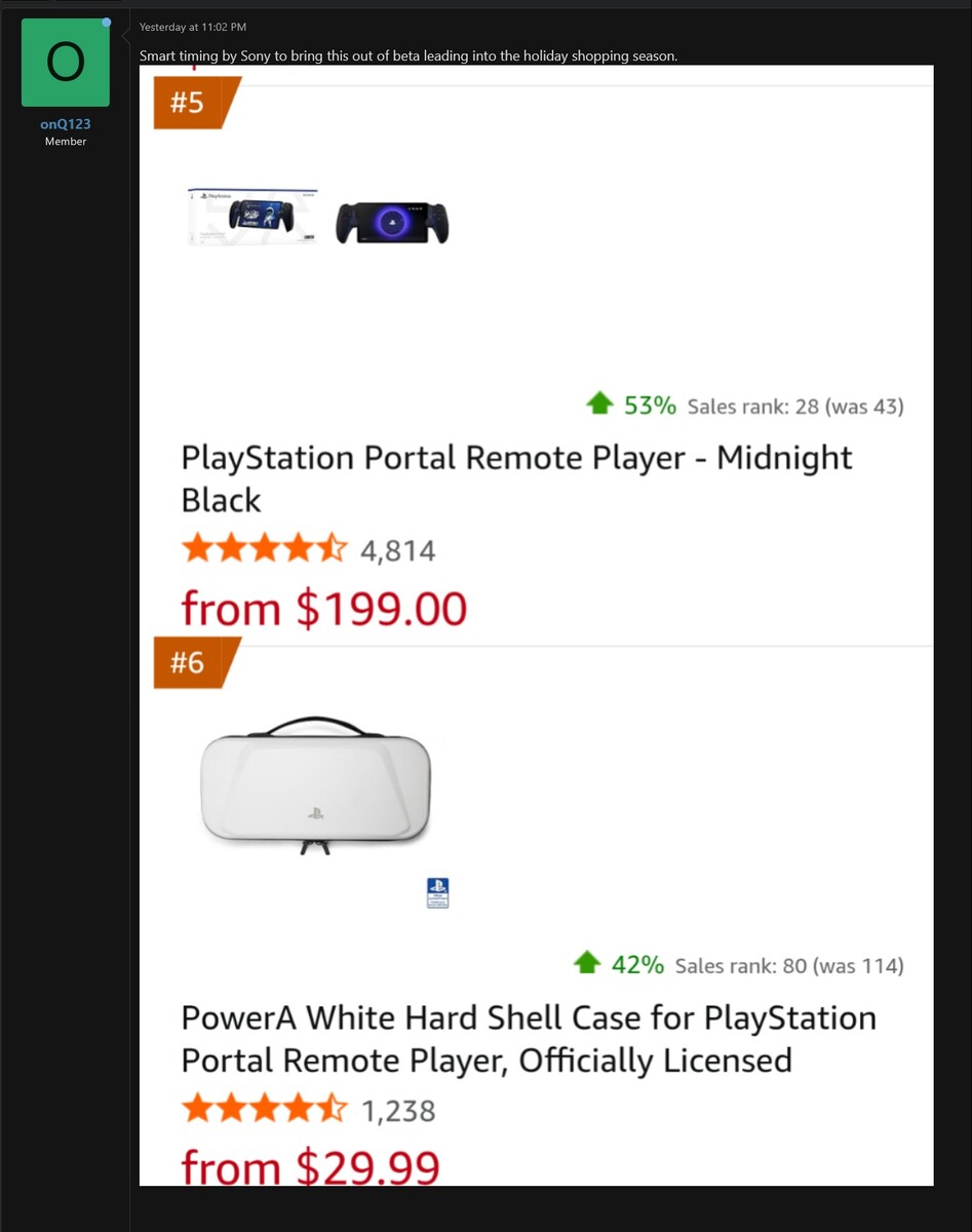 With the added value, the $199.99 MSRP of Sony’s mobile device looks more competitive. On the NeoGaf forums, onQ123 noticed that the Portal had jumped from 43rd to 28th place on Amazon’s video games rankings. Essential PlayStation Portal accessories like carrying cases are also in high demand.