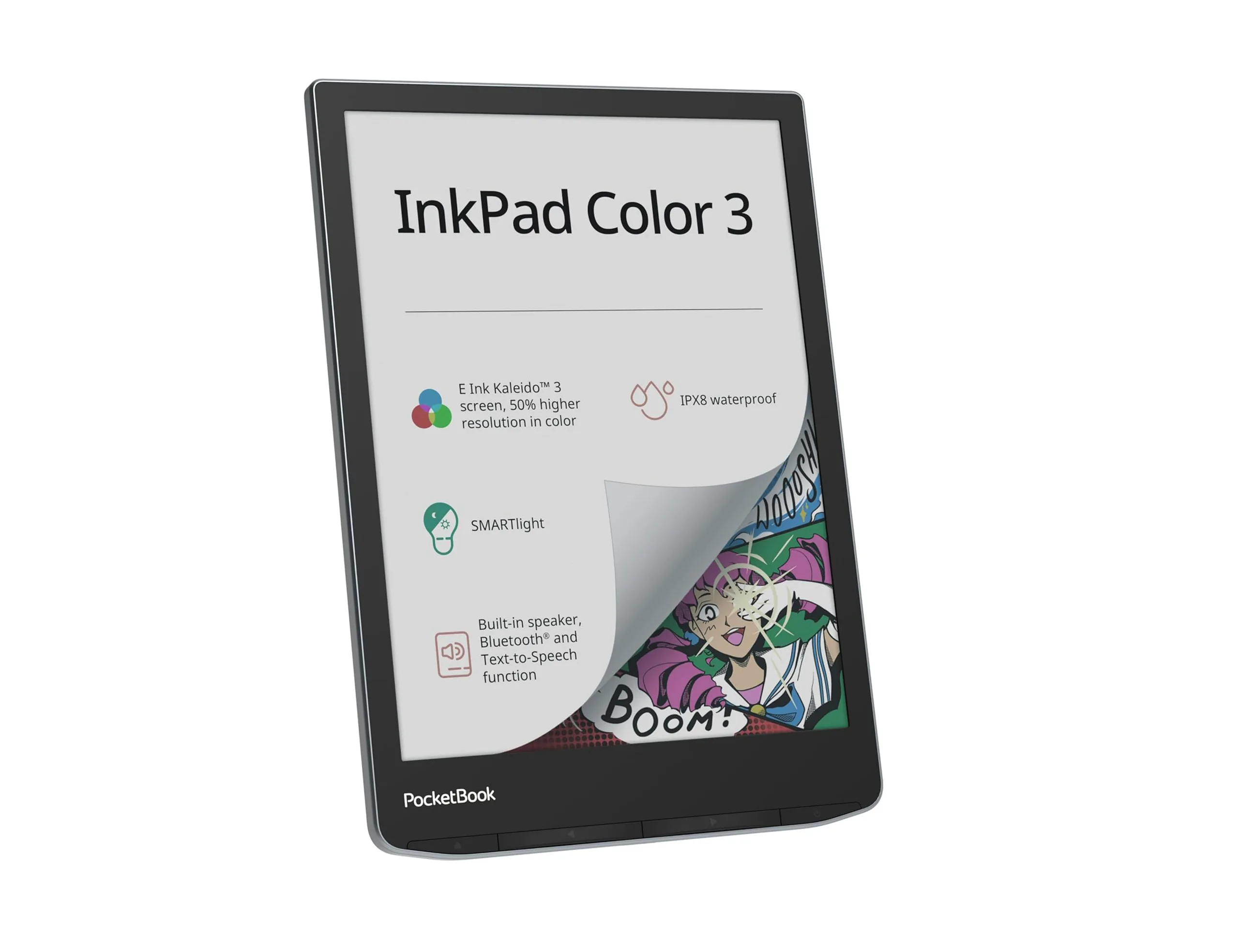 PocketBook has brought the InkPad Color 3 to North America, following its launch last month in Europe. To recap, the InkPad Color 3 relies upon a Kaleido 3 E-ink display that measures 7.8-inches across. According to Pocketbook, the display delivers 4,096 colours, 50% up on the InkPad Color 2.