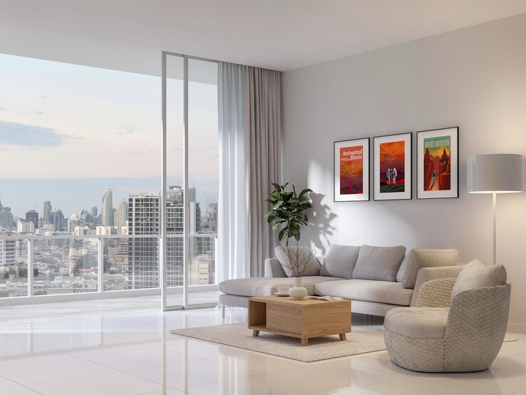 Regardless of size, all models have an E Ink Spectra 6 panel. The smallest version boasts a pixel density of 150 PPI, the 28.5-inch model 131 PPI, and the 31.5-inch version only 94 PPI. While the panel can always display up to 60,000 colors, the most expensive 28.5-inch version utilizes Sharp IGZO technology, allowing for faster image refresh rates. Because the picture frames have no backlighting and only reflect ambient light, they are designed to be particularly easy on the eyes and virtually indistinguishable from printed paper at first glance.