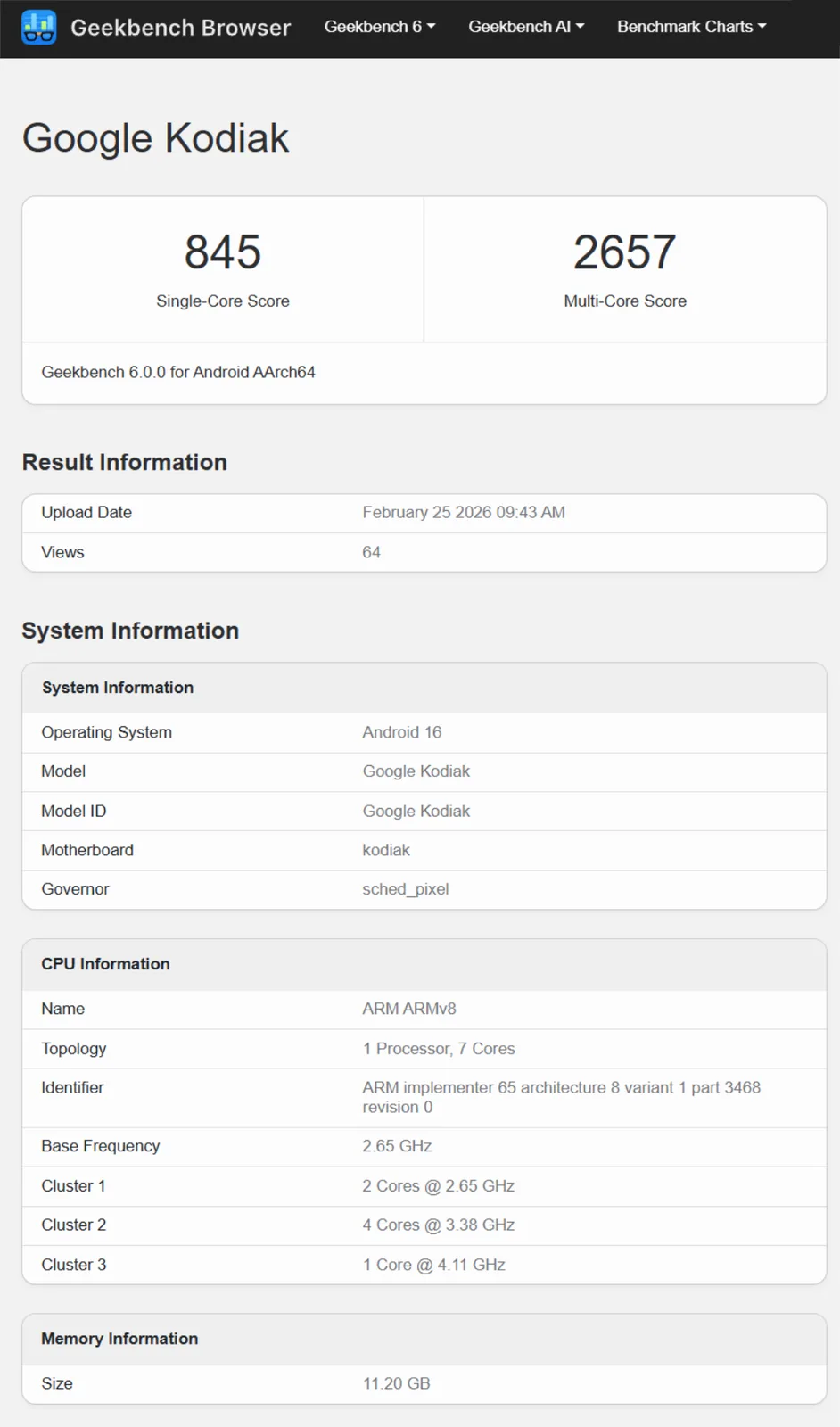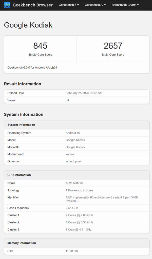 Now, a leaked Geekbench listing suggests that Google is plotting an unusual departure for the forthcoming Pixel 11 series. As always, the benchmarking platform does not provide a retail name. Nonetheless, 'Google Kodiak' has already been established as the codename for the Pixel 10 Pro XL.