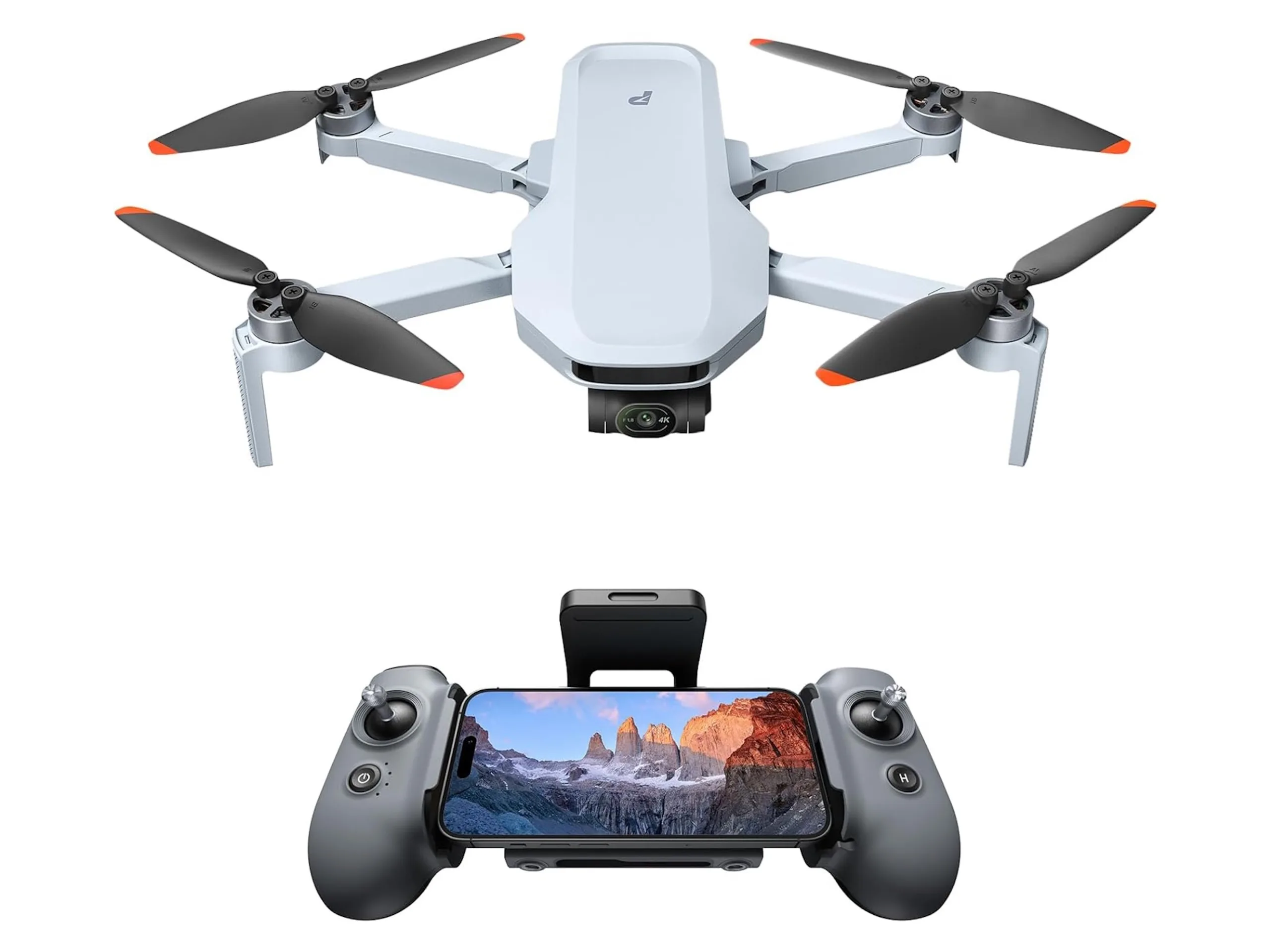 The Potensic Atom 2 measures approximately 3.5 x 5.6 x 2.3 inches when folded, and it comes with a GNSS module that supports GPS, GLONASS, Galileo and BeiDou. Therefore, the drone doesn’t have to be controlled manually but can also fly predefined routes by itself. Alternatively, the drone can follow users automatically, which can be quite useful during certain activities. Under perfect conditions, the Atom 2 has a wireless range of up to 6.2 miles. A remote control with a smartphone mount is included in the box, and it offers two additional customizable buttons.