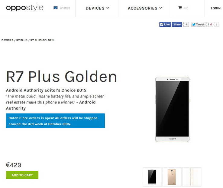 Oppo had already made available the R7 and R7 Plus as pre-orders late June, though they had sold out before many users got the chance to checkout. The manufacturer has now announced round 2, but this time for the Gold-colored 6-inch R7 Plus Golden phablet. Effectively immediately, users can pre-order the device for just under 430 Euros.