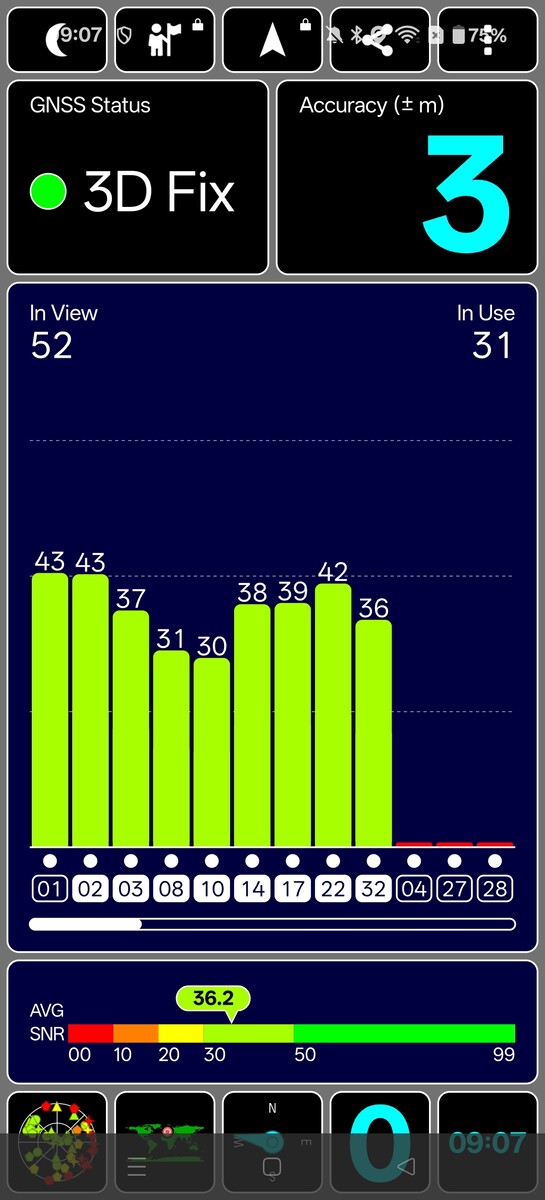 As soon as you step outside, you're quickly located by the satellites to within 3 meters. All major systems are available, although SBAS for even higher accuracy isn't supported.
