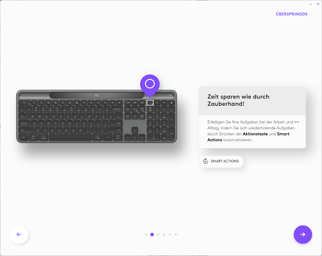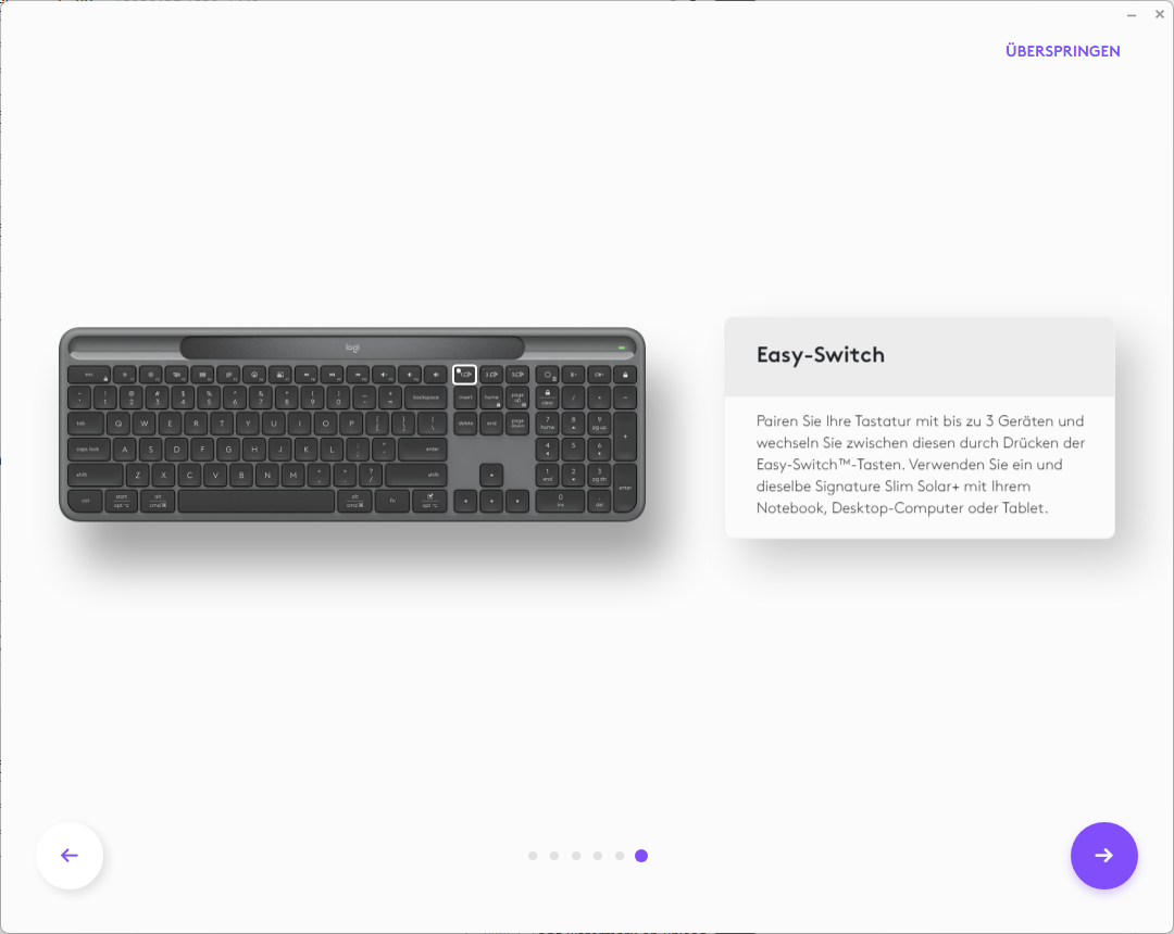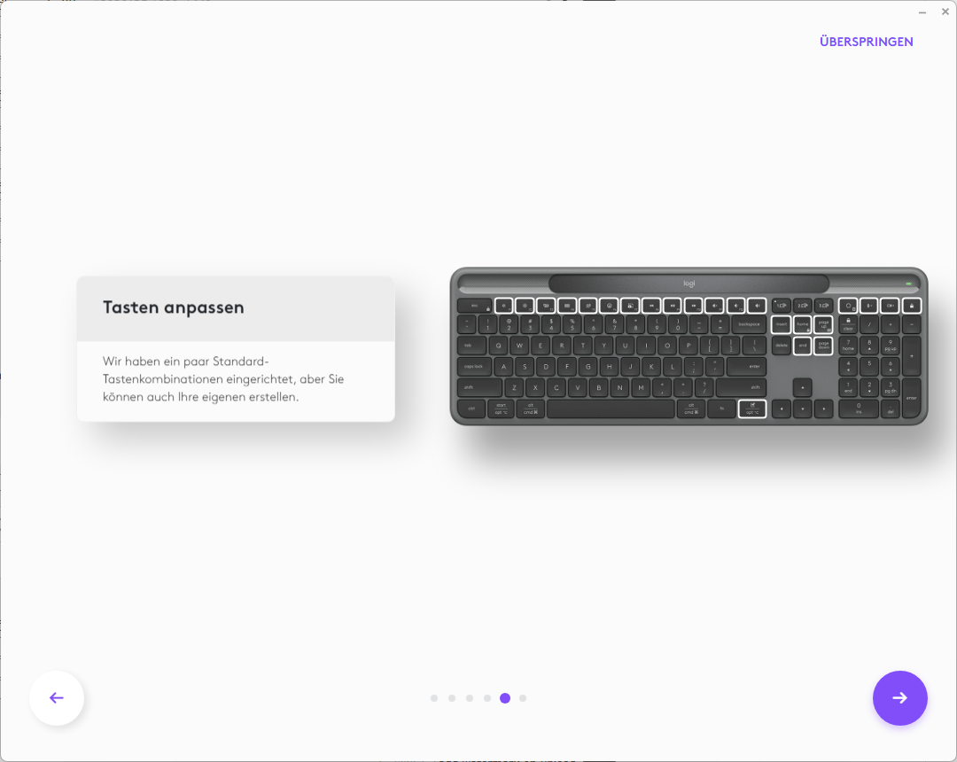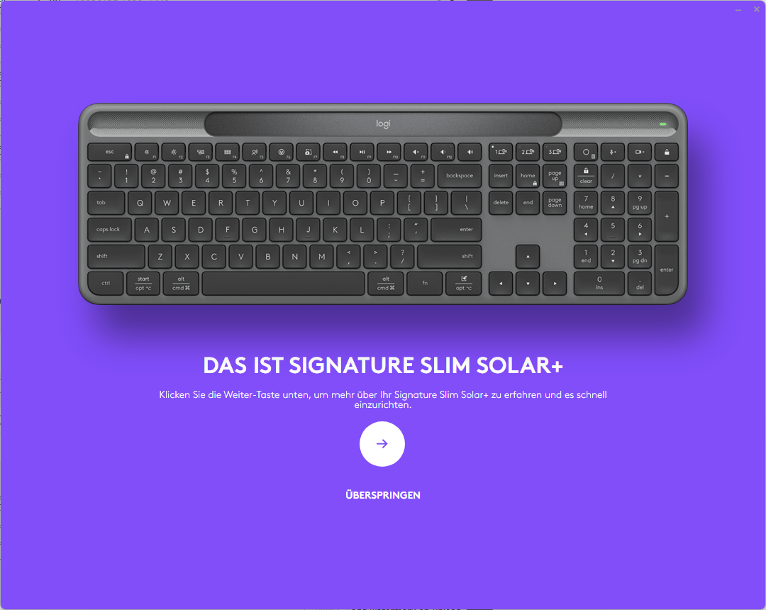 Logitech offers Logitech Options Plus software for the Signature Slim Solar+, which provides a wide range of customisation options. The software allows you to customise key assignments, program smart actions and optimise special functions such as switching between connected devices. The software is available for Windows and macOS and is easy to install. It is intuitive to use and the customisation options are more than sufficient for everyday use. Advanced users also have the option of creating special profiles that load automatically depending on the device being used.
