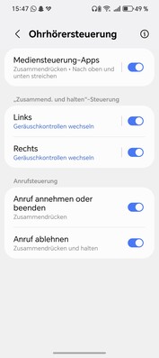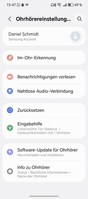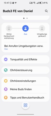 The 11mm driver in the Samsung Galaxy Buds3 FE produces a comparatively balanced sound with slightly boosted bass, clear mids, and somewhat overly prominent treble. Nevertheless, the Samsung earbuds deliver a fairly well-balanced sound for true wireless earbuds. Galaxy AI also enables spatial sound (360 Audio) with head tracking on compatible devices, and EQ adjustments in the app offer presets like "Dynamic" or "Bass Boost" for fine-tuning. Audiophiles will likely be disappointed, but for everyday use, Samsung offers an appealing overall package.