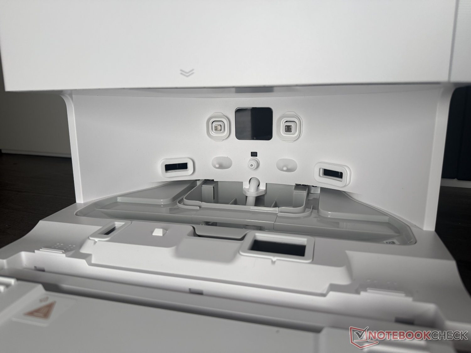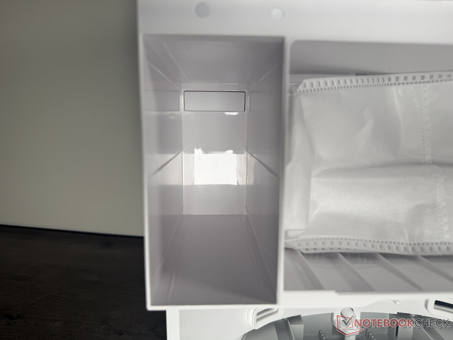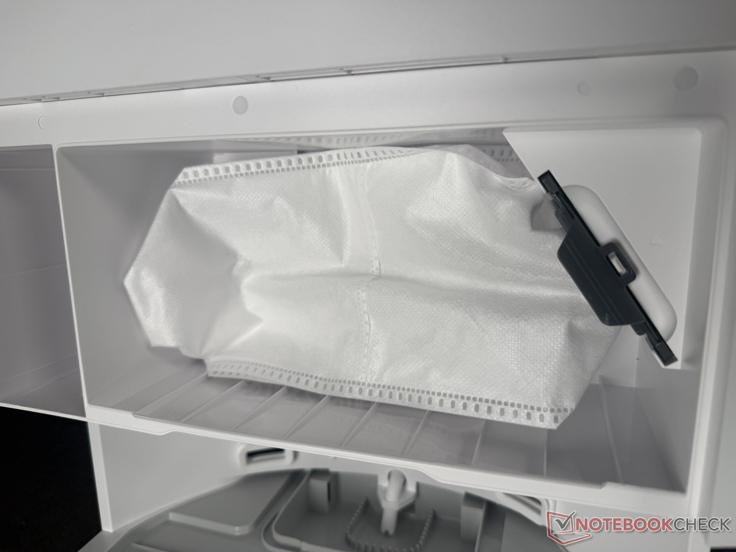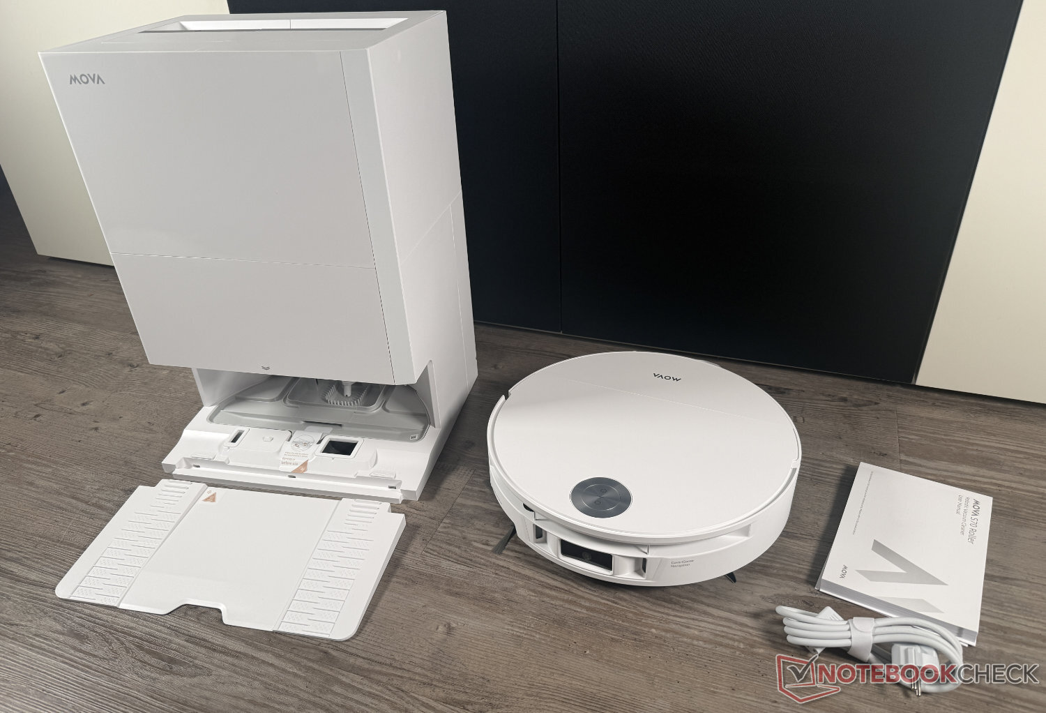 The Mova S70 Roller is supplied without accessories, but with a simply designed cleaning station. In addition to the usual suction into a 3.2 l dust bag, this washes the mop roller with 80°C hot water and then dries it with 70°C hot air. The station is not self-cleaning, nor does it automatically dispense detergent. The space provided for this in the station is empty.