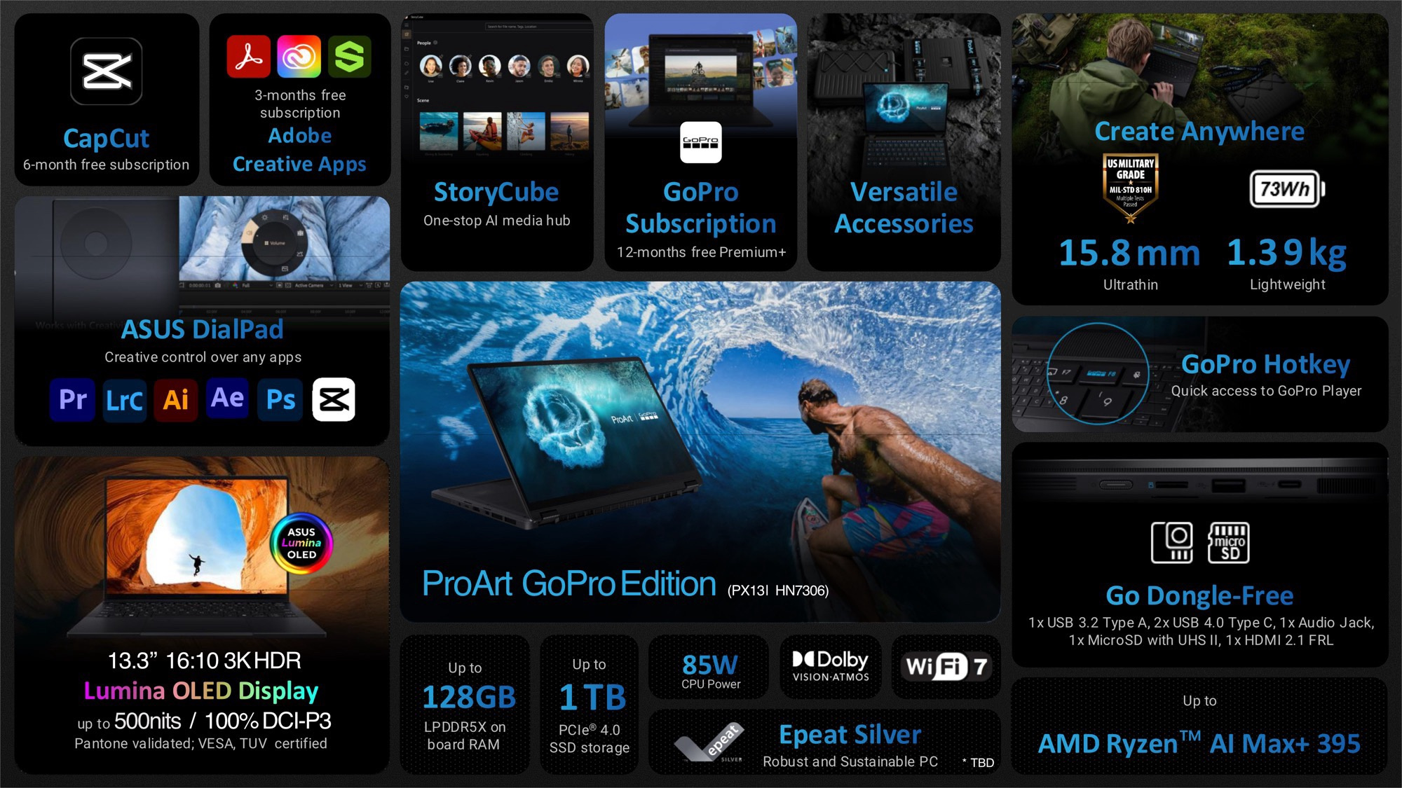 As it turns out, the ProArt GoPro Edition (PX13) is one of three new ProArt PX13 SKUs launching this year. Unfortunately, Asus has not confirmed pricing or availability yet. Instead, the company is using CES 2026 to focus on how the latest ProArt PX13 differs from its predecessor on a technical basis.