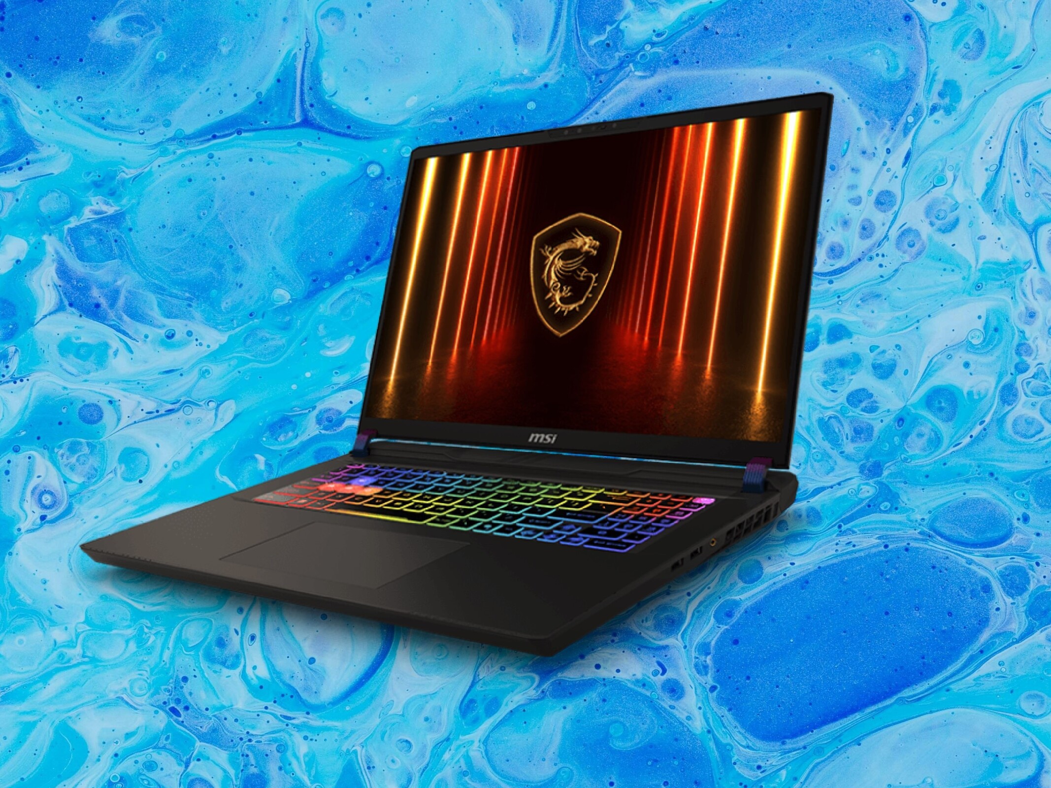 On the outside, the robust chassis incorporates a 24-zone RGB keyboard with a curious layout, a spacious trackpad, and a good port selection that includes all the essentials. For instance, there are two USB 4 ports, two Type-A connectors, an SD card reader, and more.