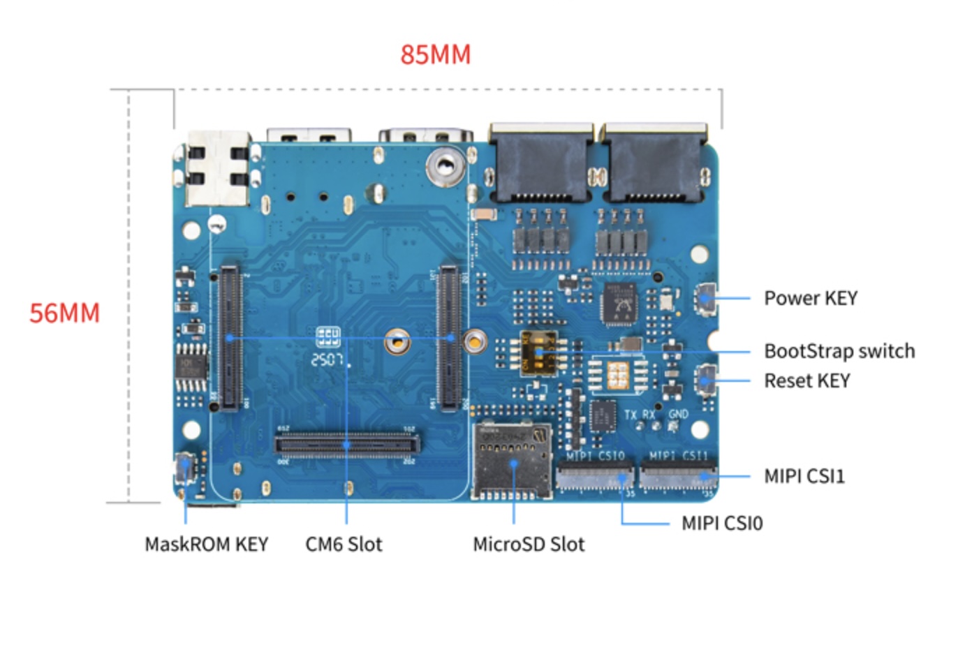 The SoC also packs a decent iGPU, the IMG BXE-2-32 iGPU clocked at 819 MHz with support for OpenCL 3.0, Vulkan 1.3, and OpenGL ES 3.x. Like the Raspberry Pi CM4 (currently $55 on Amazon), the Banana Pi CM6 is just a compute module, and requires a carrier board for I/O ports, priced at $17 on Banana Pi's official store. The detailed list of I/O interfaces supported by the CM6 is as follows: