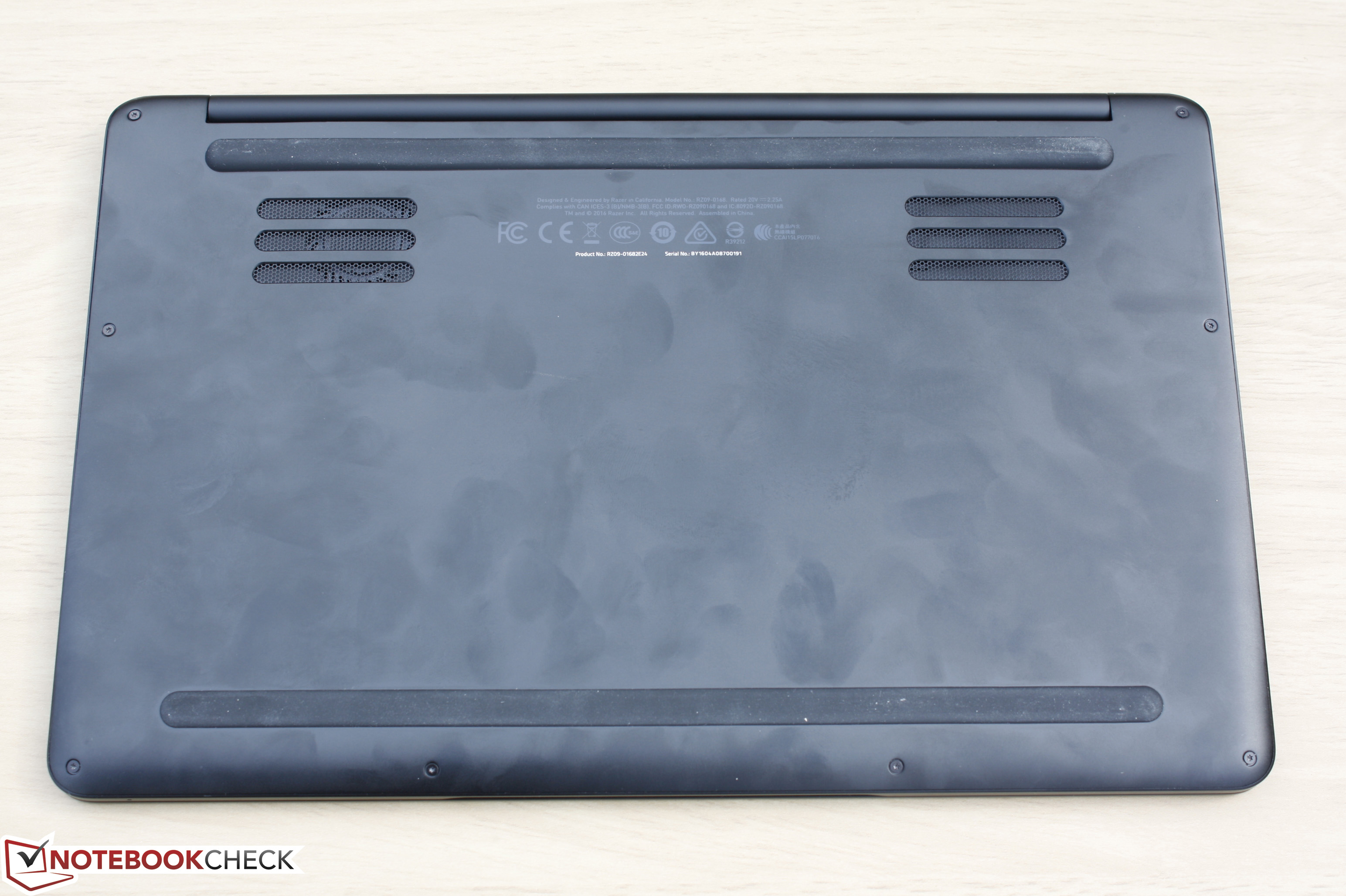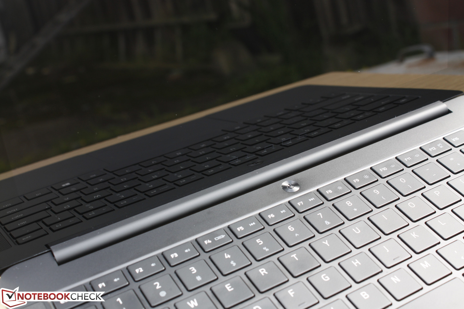 The display exhibits excellent rigidity due to its wide hinge, small size, metal lid, and glass touchscreen. While the jet black chassis gives the impression of a unibody design, the hinge is actually plastic and consequently houses the antenna for the WLAN module. Nonetheless, the bar hinge is sufficiently tight and with no display rocking all the way up to its maximum angle of roughly 150 degrees.