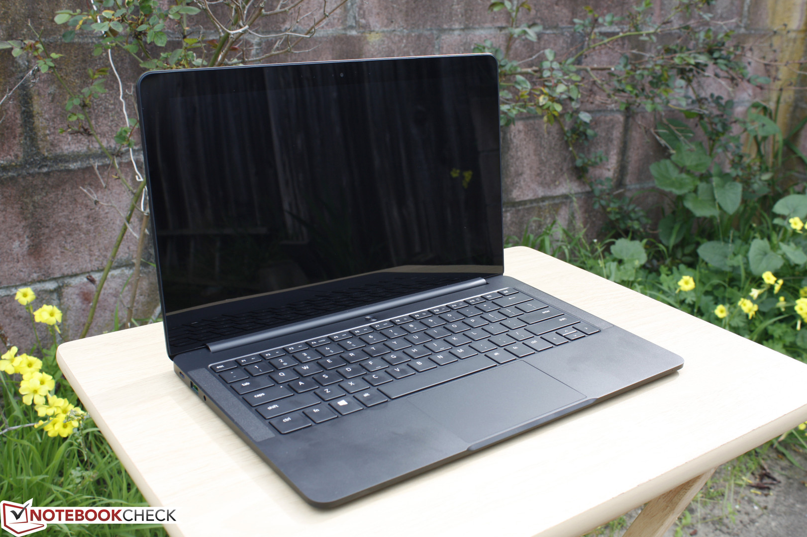 4K resolution (3840 x 2160) on a 12.5-inch panel is absolutely insane in the best and worst ways possible. Its PPI of 352.5 is one of the densest for its notebook size class. Razer is promising 100 percent AdobeRGB coverage (or 70 percent for the QHD SKU) and our own measurements show contrast levels deeper than 1000:1 with a brighter backlight than many of its competitors. Combine this with the mandatory touchscreen option and almost no uneven backlight bleeding and it becomes obvious that Razer has put in a lot of effort into providing a high-class display.