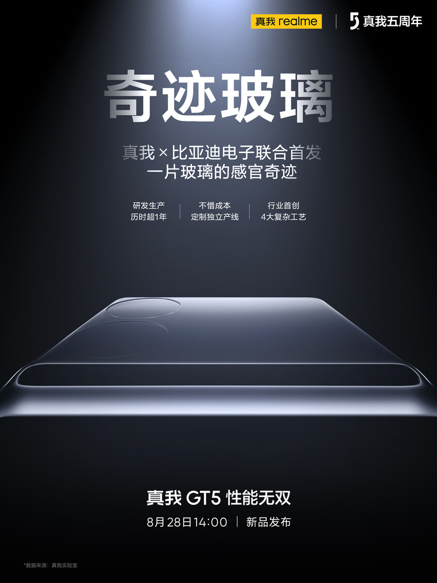 It will also challenge the Nothing Phone (2) with an LED accent that has grown and changed in shape compared to that of the Neo5. However, unlike either older handset, the GT5's camera hump will be made using a whole new "full-coverage hot-forging glass process" developed in collaboration with BYD Electronics.