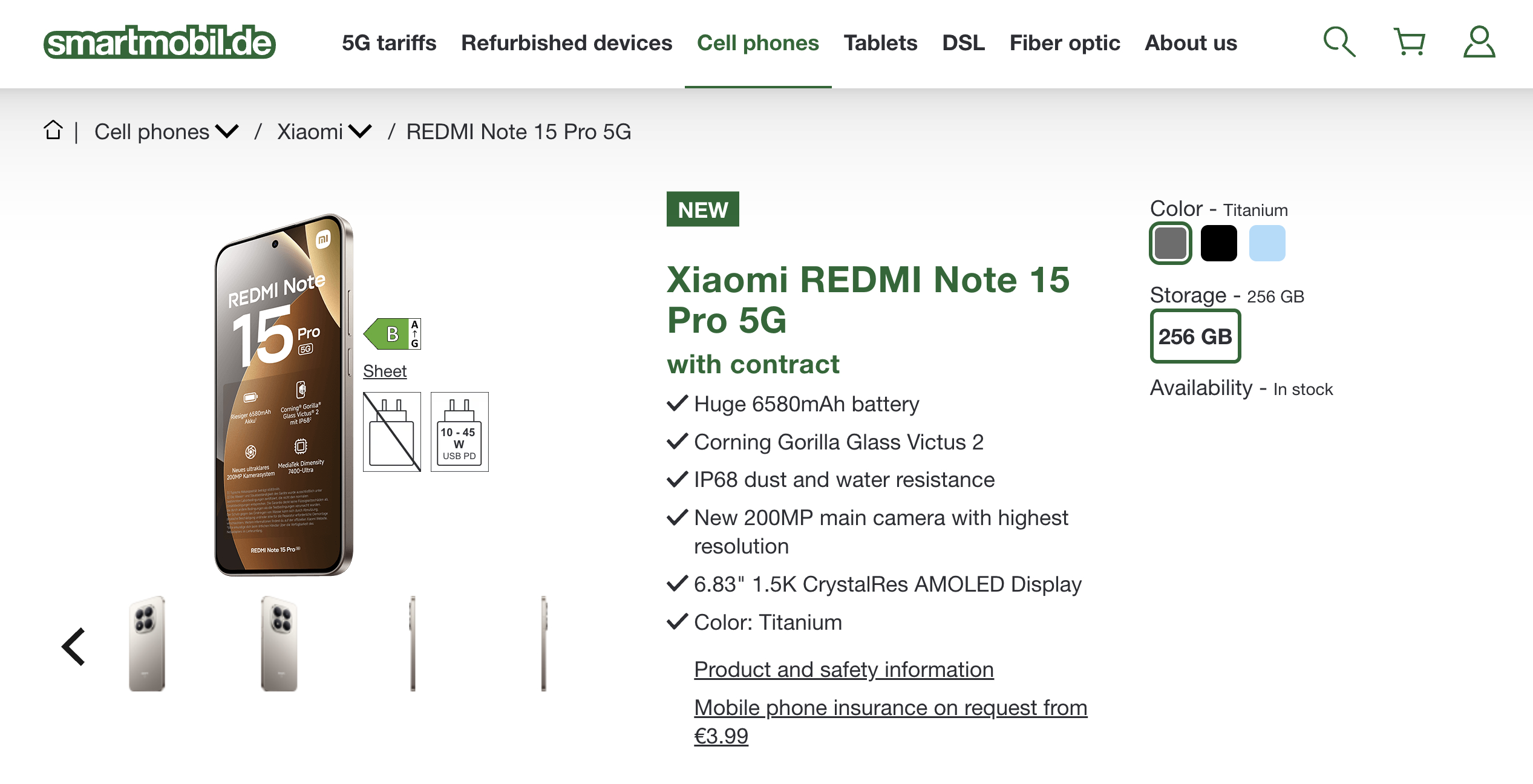 Reportedly, this variant could retail for €399 (~$465), with Smartmobil adding that Black, Glacier Blue and Titanium colour options will be available from launch. Regardless of colour, the Redmi Note 15 Pro 5G will feature 200 MP primary, 20 MP selfie and 8 MP ultra-wide-angle cameras. Apparently, one can already order the device in Germany too, although it remains to be seen whether Smartmobil will actually ship units at this stage.