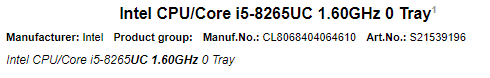 The above notification was created in relation to a new manufacturing site in Vietnam. However, there is reference to V0 stepping relating to improvements in memory support. The Intel Core i3-8145UC, Core i5-8265UC, and Core i7-8565UC could be available soon, according to the dates offered by some of the online retailers.